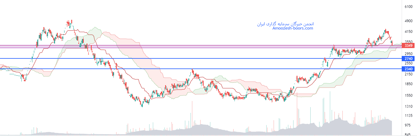 همانطور که در نمودار دلقما ملاحظه میفرمایید قیمت در ناحیه حمایت ابر کومو قرار داشته اما هنوز نشانه تثبیت قیمت ایجاد نشده ، در صورت واکنش مثبت ایجاد کندل پر قدرت برگشتی یا شدو های بلند در این ناحیه ، پیشنهاد به نگهداری سهم با در نظر داشتن مقاومت های مهم 370 و 400 تومان داده شده و تارگت را قله تاریخی قرار میدهیم.