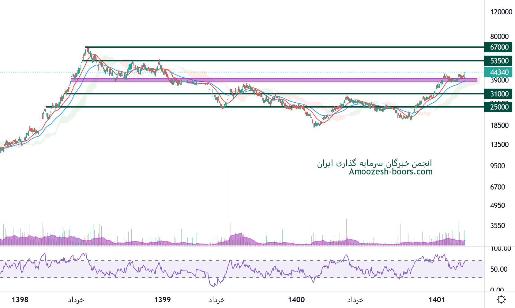 نماد دپارس با عبور از محدوده مقاومتی 37000 ریال در محدوده کم ریسکی قرار گرفته، در صورت تثبیت در این محدوده حرکت سهم تا 53500 ریال محتمل خواهد بود، همچنین در صورت از دست رفتن این محدوده، حمایت های سهم 31000 و 25000 ریال ارزیابی میگردند.