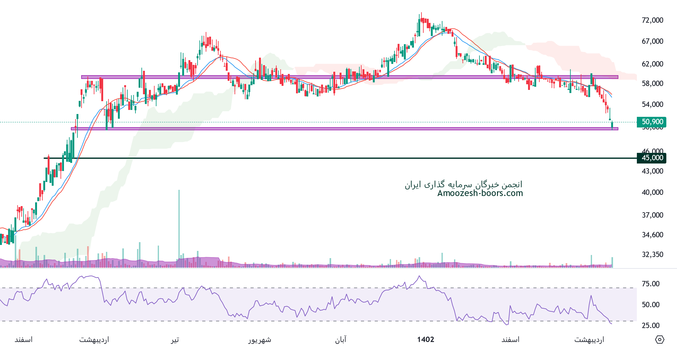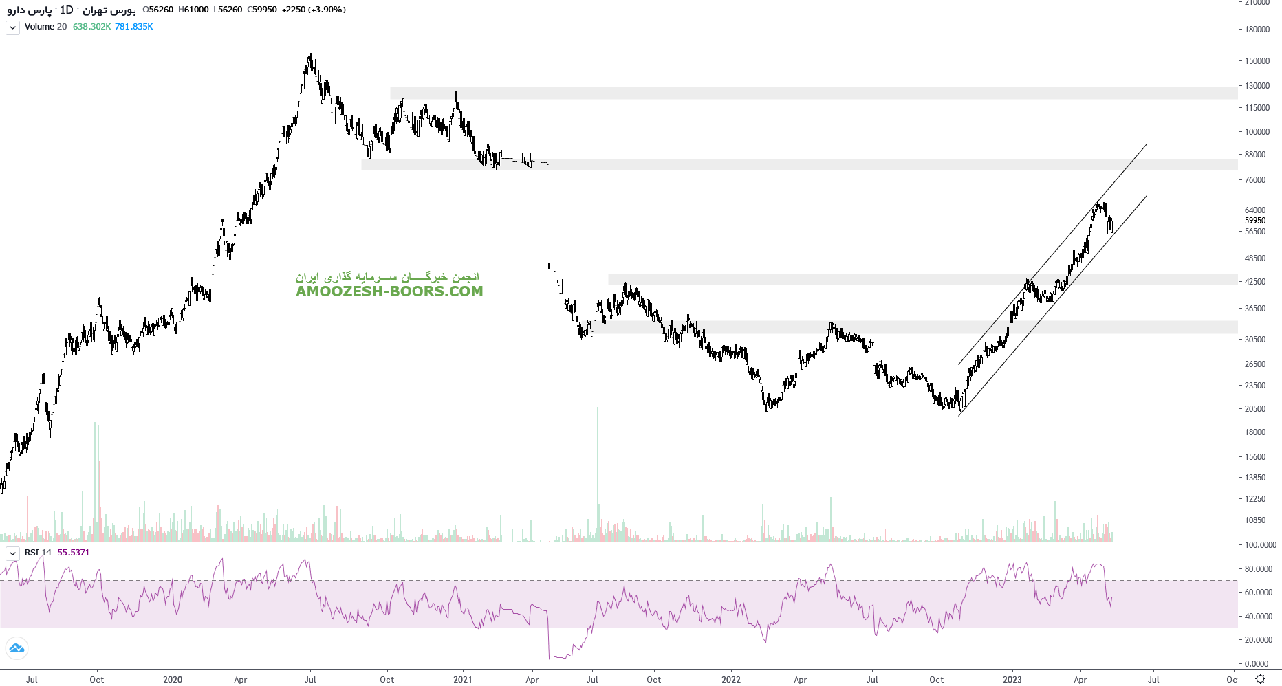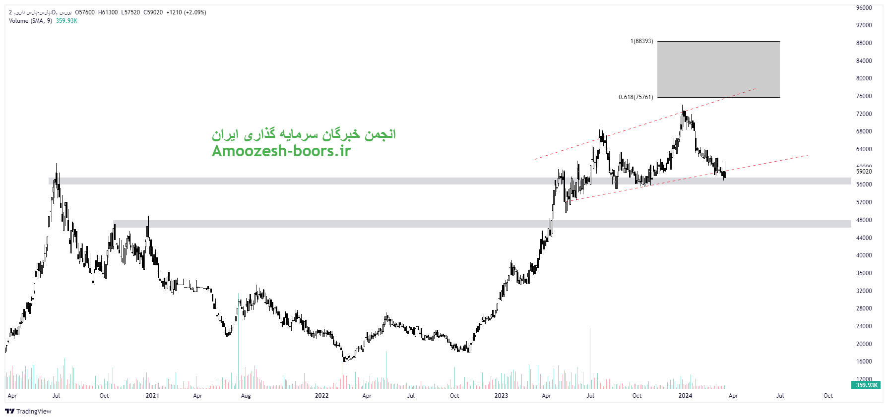 سهم دپارس بر روی حمایت قوی ناحیه 57000 ریال قرار گرفته است لذا در صورت ایجاد تقاضا و برگشت سهم به مدار صعود، مقاومتهای مهم نواحی ۷۶۰۰۰ و 90000 ریال مهمترین مقاومتهای سهم دپارس در مسیر صعودی در نظر گرفته میشوند. همچنین در صورت از دست رفتن حمایت مهم ناحیه 57000 ریال نزدیکترین حمایت بعدی سهم دپارس ناحیه 47000 ریال در نظر گرفته خواهد شد.