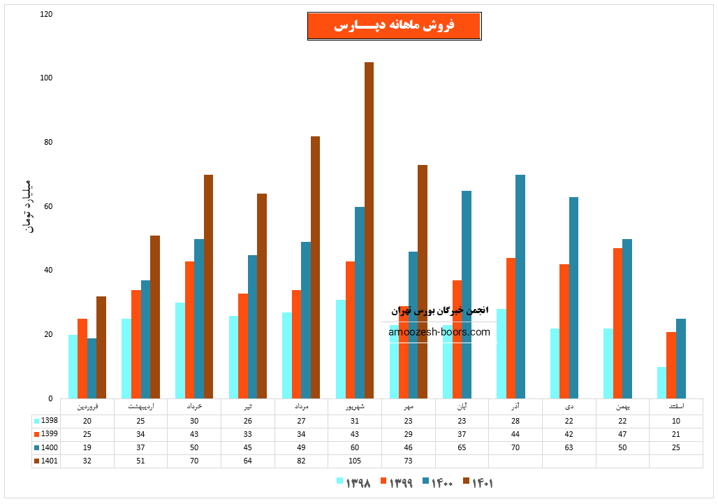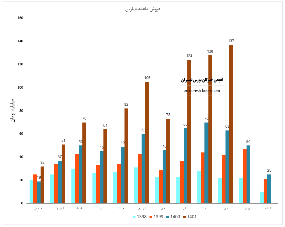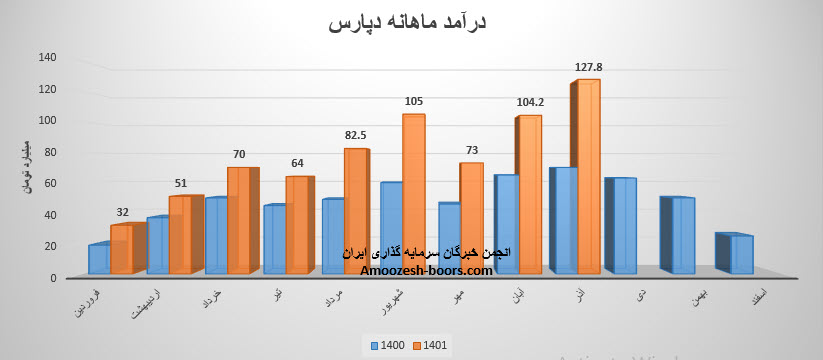 فروش سهم دپارس : 405 میلیارد تومان که نسبت به دوره مشابه گذشته 55% افزایش یافته است.