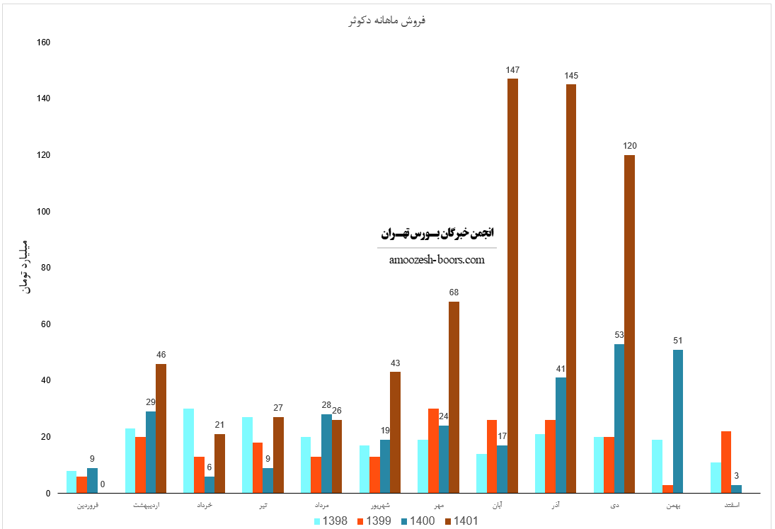 سهم دکوثر در دی ماه حدود بیش از 55/500 عدد از محصولات خود را به فروش رسانده که نسبت به ماه گذشته حدود 10 درصد کاهش پیدا کرده است.