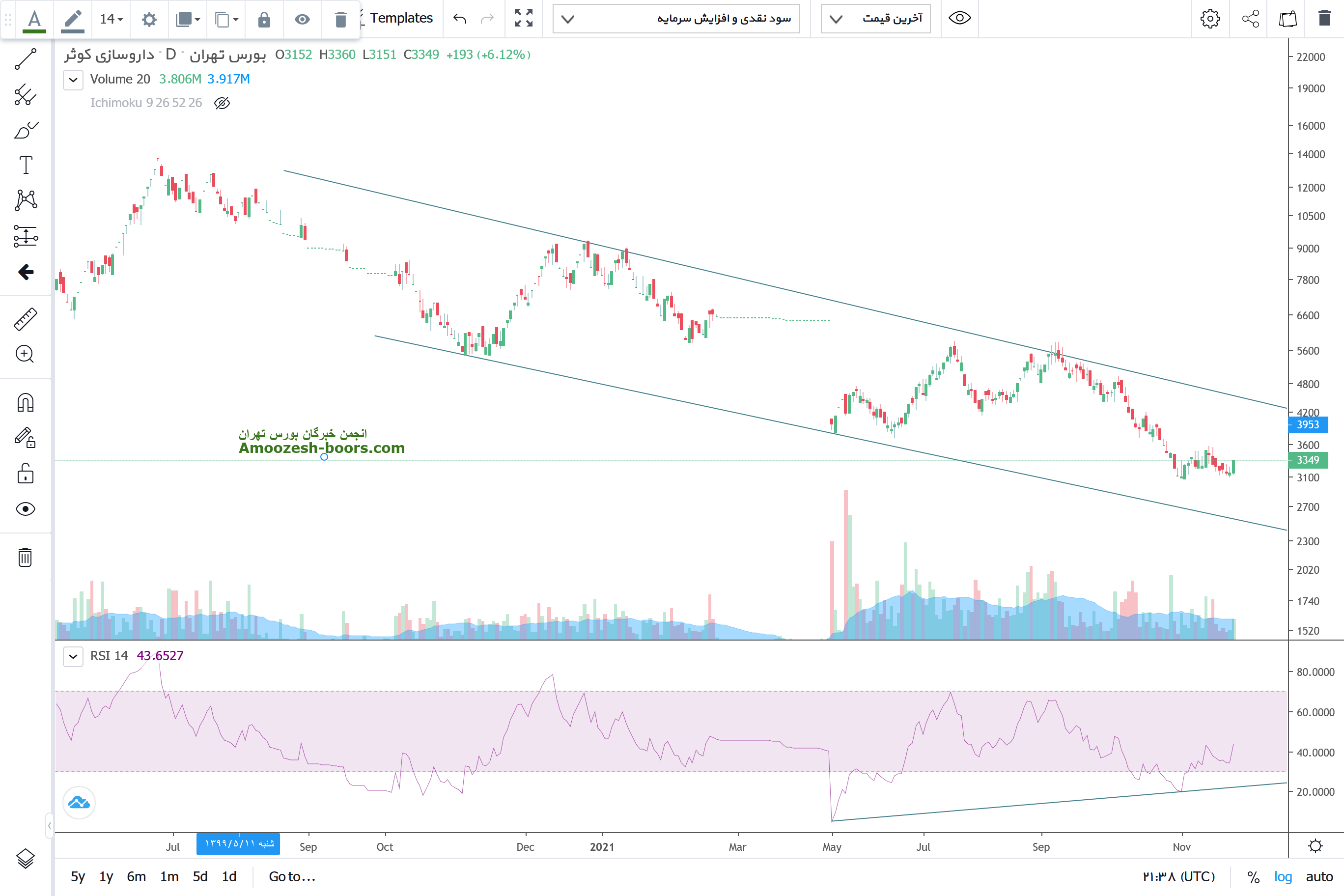 سهم دکوثر درحال حاضر در یک اینترمدیت نزولی قرار داشته و یک واگرایی مثبت ایجاد شده است و محتمل است که قیمت را بجهت صعودی متمایل نماید که درین صورت جهت اصلاح سبد میتوان نماد را روی مقاومت 3800 و 4000 بررسی داشت.