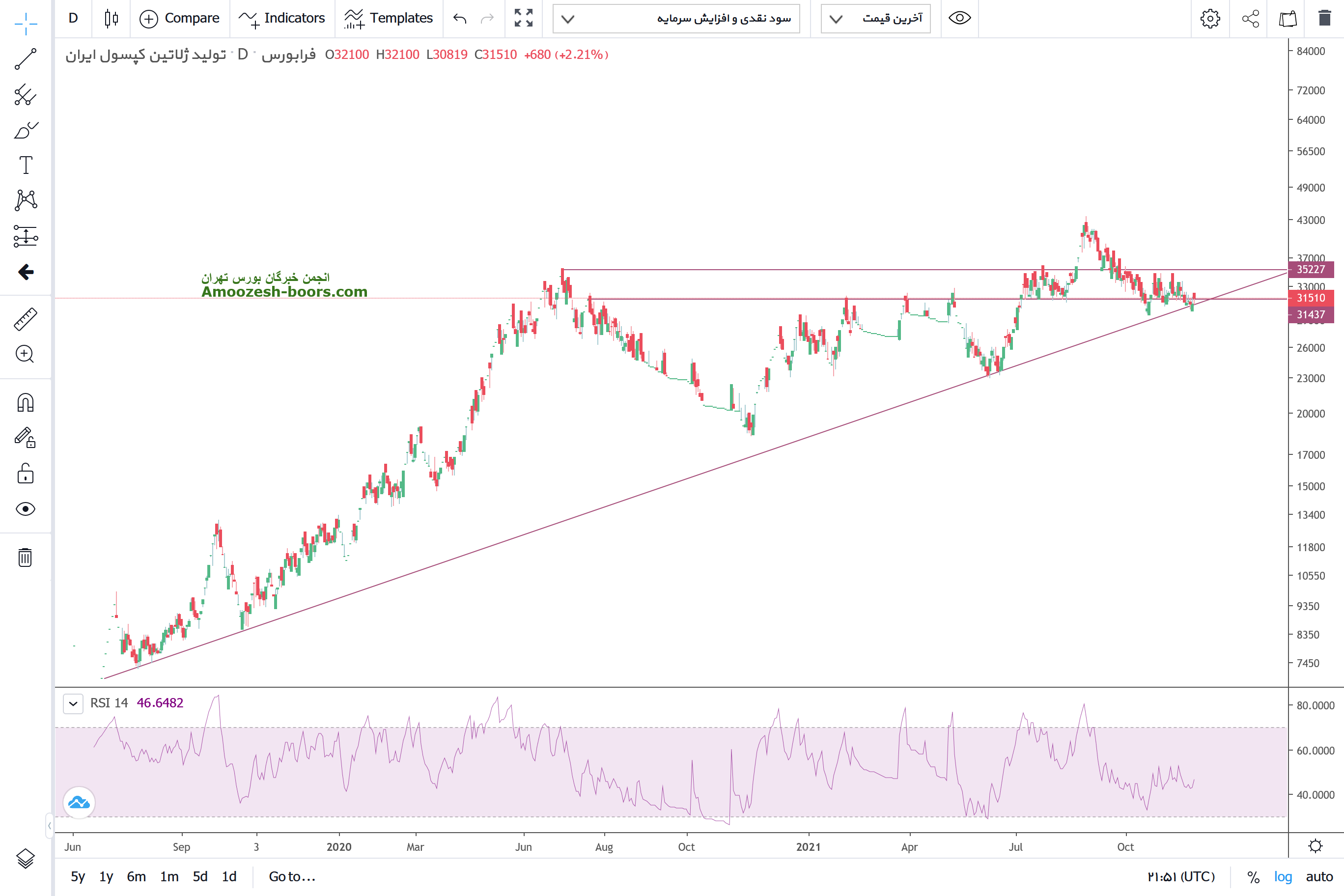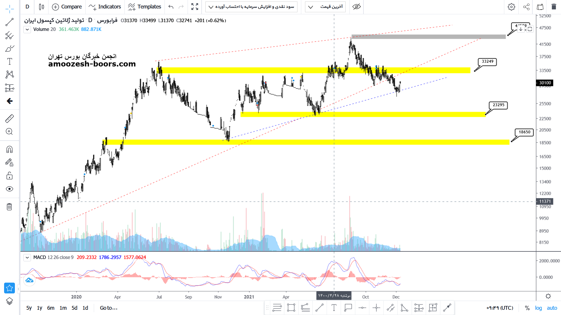 درصورت برگشت بالا مقاومت خط روند 3300 تومان انتظار رشد بیشتر تا محدوده 4500تومان از سهم دکپسول میرود