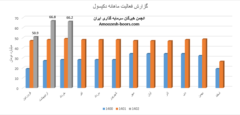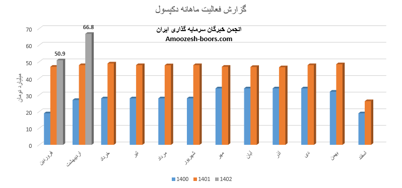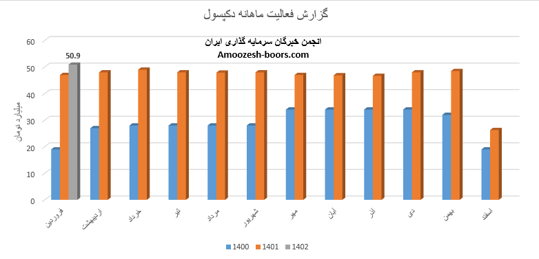 گزارش فعالیت ماهانه دکپسول نشان از ثبت رکورد جدید در گزارشات ماهانه دارد به طوری که در مقایسه با ماه گذشته 94% و در مقایسه با مدت مشابه 8% بیشتر است، فروش نماد دکپسول 50.9 میلیارد تومان گزارش شده که تماما از طریق فروش پوکه کپسول دارویی تامین گردیده است، نرخ فروش این محصول در مقایسه با ماه گذشته 26% افزایش داشته و مقدار فروش 53% و مقدار تولید 46% رشد داشته است.