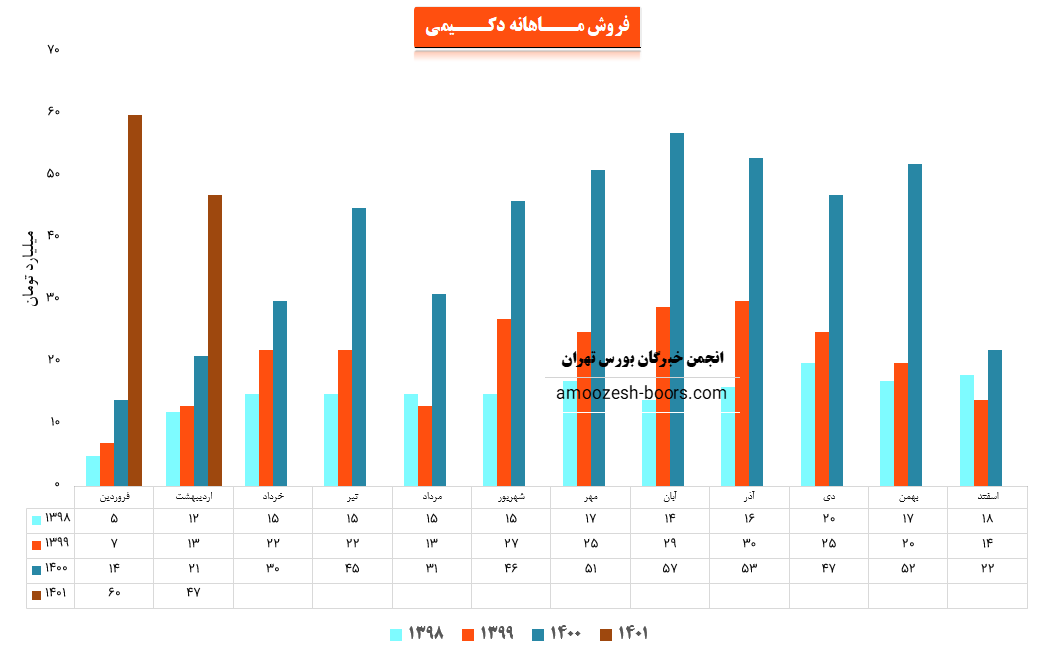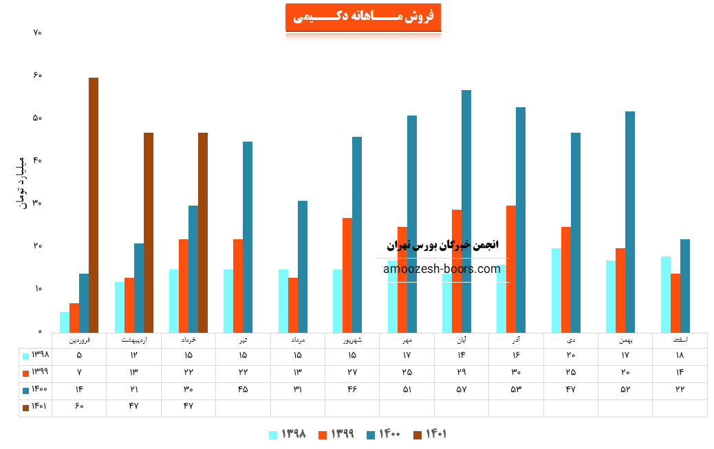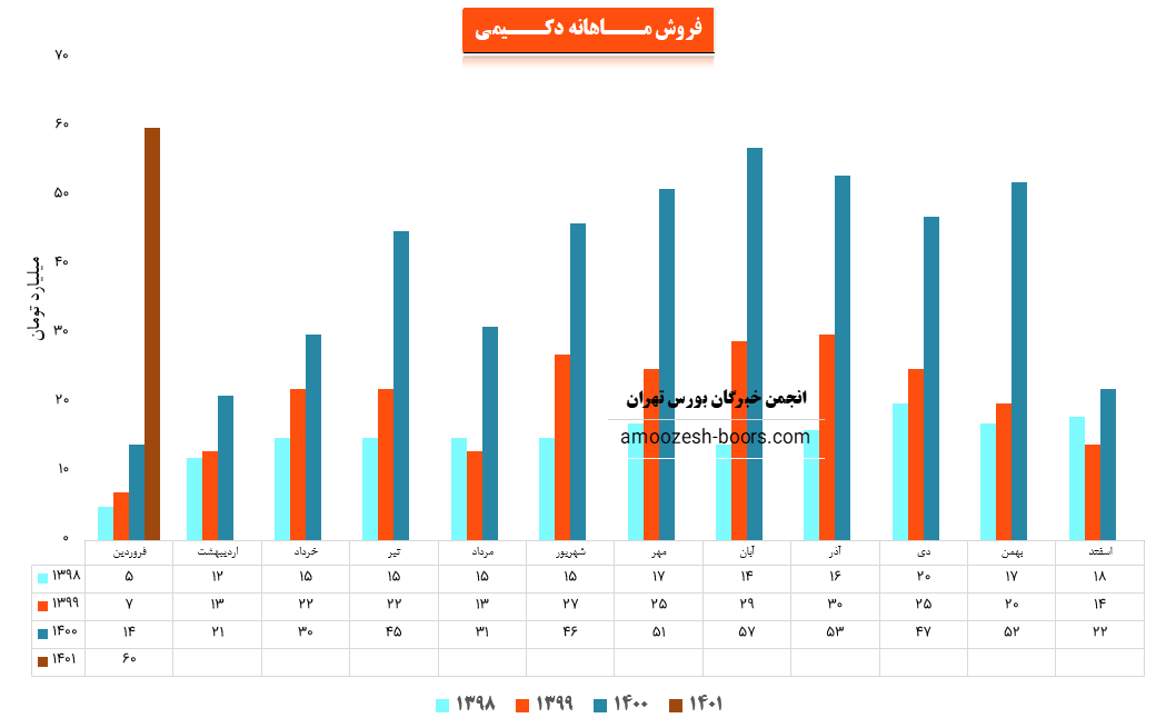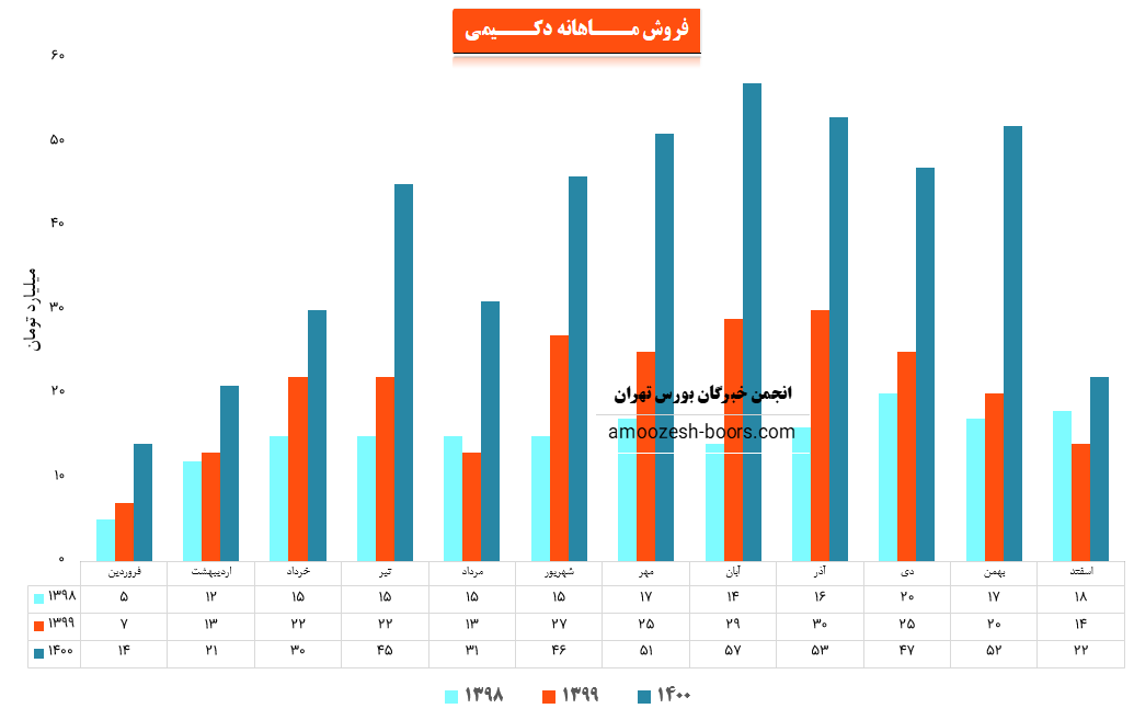 نماد دکیمی در فروردین ماه حدود بیش از 3/500/000 عدد از محصولات خود را به فروش رساند که این میزان در مقایسه با حجم فروش اسفند ماه حدود 30% رشد پیدا کرده است.
