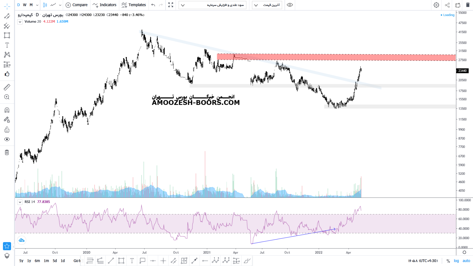 قیمت نماد دکیمی با توجه به تقاضای به وجود آمده از کف محدوده 1350 تومان توانسته مقاومت مهم محدوده خط روند خود را از بین ببرد اکنون مقاومت مهم محدوده ۲۸۰۰ تومان را پیش روی خود دارد که در صورت بروز واکنش منفی به این محدوده مقاومتی میتواند اصلاحی را مجدداً تا محدوده حمایتی ۱۸۰۰ تومان انجام دهد تا این محدوده حمایتی دکیمی را تست کند اما در صورت شکست این محدوده مقاومتی نیز میتواند رشد خود را تا محدوده سقف تاریخی ۴ هزار تومان نیز ادامه دهد.