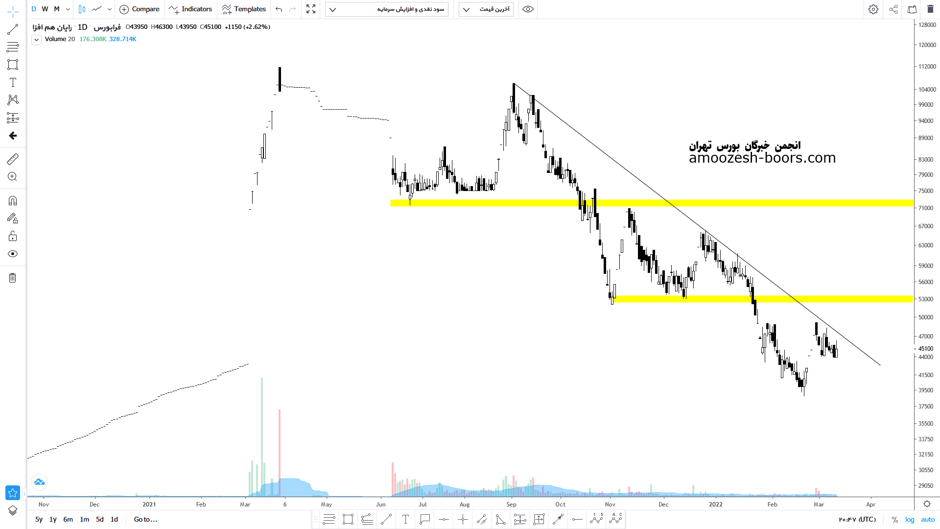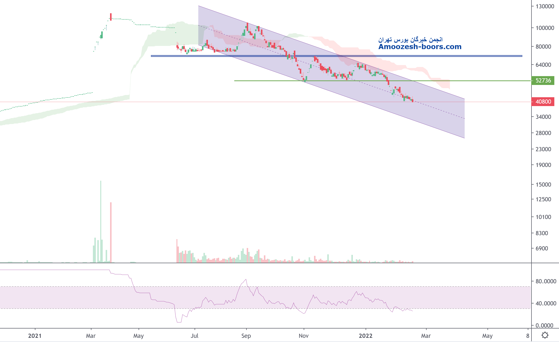 در صورت شکست خط روند نزولی می تواند صعود خود را تا محدوده ۵۳۰۰ تومان ادامه دهد اما در صورت عدم شکست و بروز واکنش منفی محدوده کف ۳۹۰۰ تومان مجدداً تست خواهد شد.