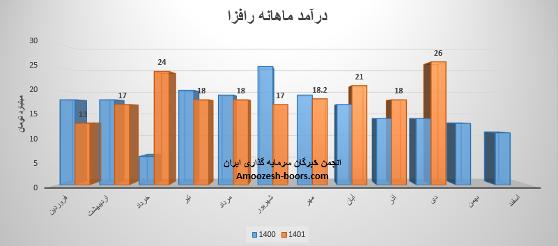 مجموع درآمد سهم رافزا طی عملکرد 10 ماهه سال مالی نسبت به مدت مشابه سال قبل 21% رشد داشته است .