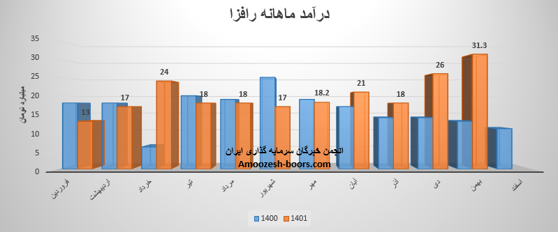 نماد رافزا (شرکت رایان هم افزا) در فروردین ماه 1402 حدود مبلغ 39 میلیارد تومان درآمد داشته که این میزان در مقایسه با ماه گذشته 129 درصد و همچنین در مقایسه با مدت مشابه سال گذشته 200 درصد افزایش درآمد داشته است.