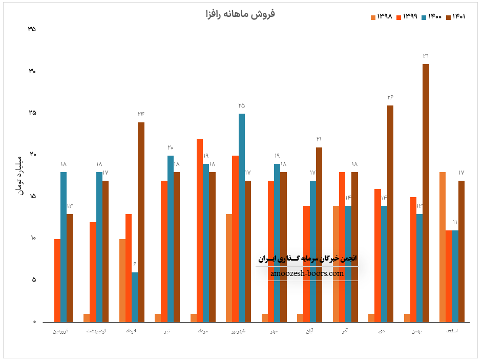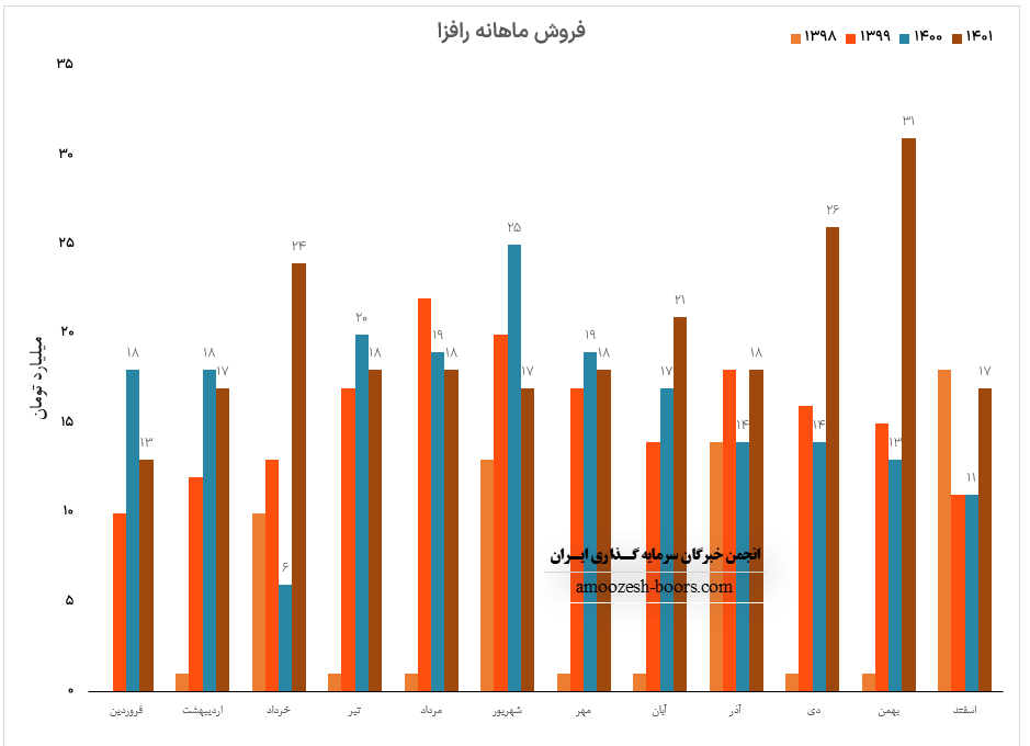 نماد رافزا (شرکت رایان هم افزا) در اسفند ماه 1401 حدود مبلغ 17 میلیارد تومان درآمد داشته که این میزان در مقایسه با ماه گذشته 45 درصد کاهش و همچنین در مقایسه با مدت مشابه سال گذشته 55 درصد افزایش درآمد داشته است.