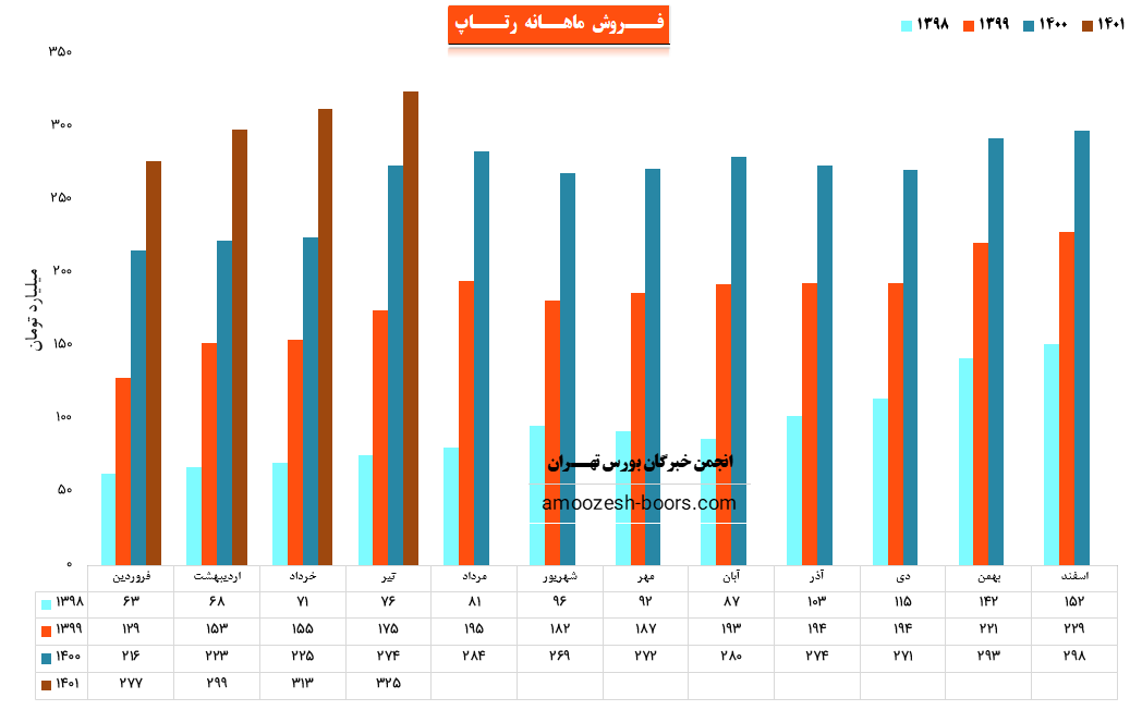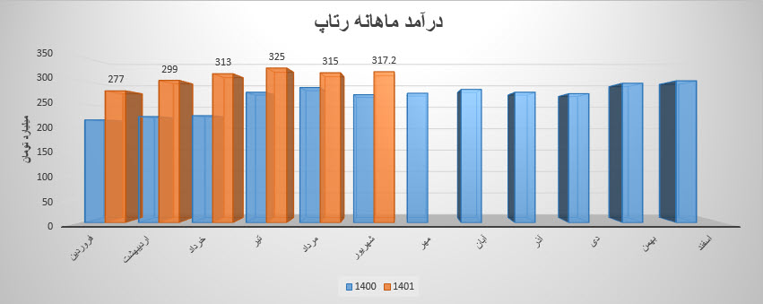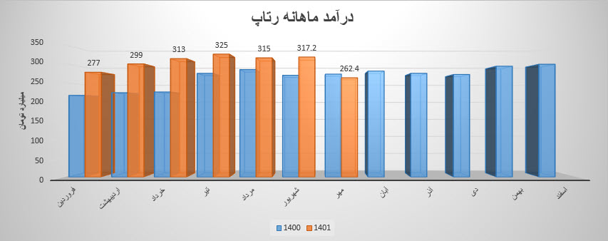 سهم رتاپ (شرکت تجارت الکترونيک پارسيان) در تیر ماه ۱۴۰1 حدود مبلغ 325 میلیارد تومان درآمد داشته که این میزان در مقایسه با ماه گذشته 4% و همچنین در مقایسه با مدت مشابه سال گذشته 19% رشد درآمد پیدا کرده است.