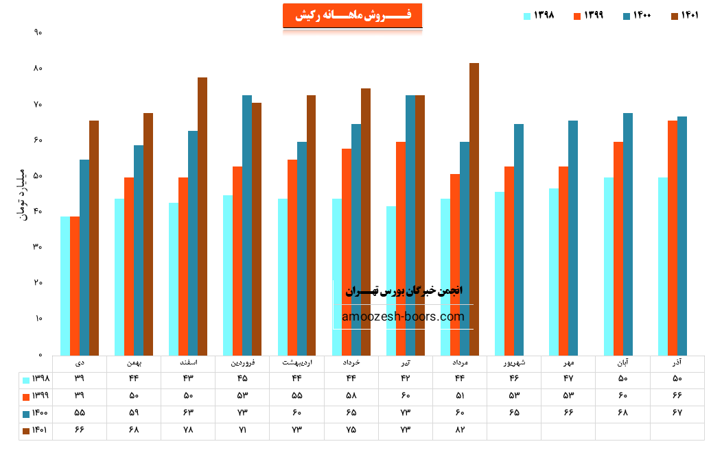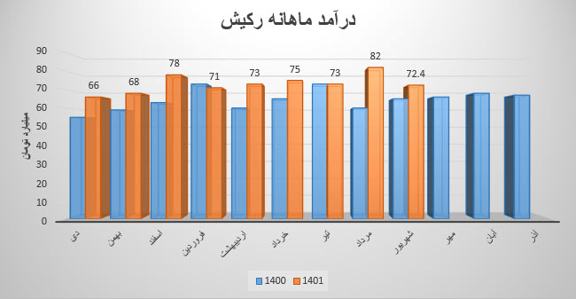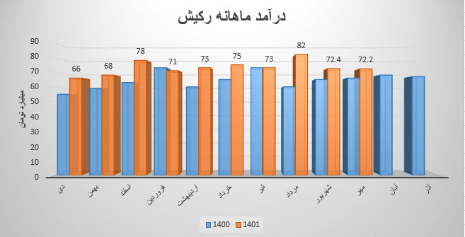 نماد رکیش (شرکت کارت اعتباری ایران کیش) در مرداد ماه ۱۴۰1 حدود مبلغ 82 میلیارد تومان درآمد داشته که این میزان در مقایسه با ماه گذشته 12% و همچنین در مقایسه با مدت مشابه سال گذشته 37% رشد پیدا کرده است.