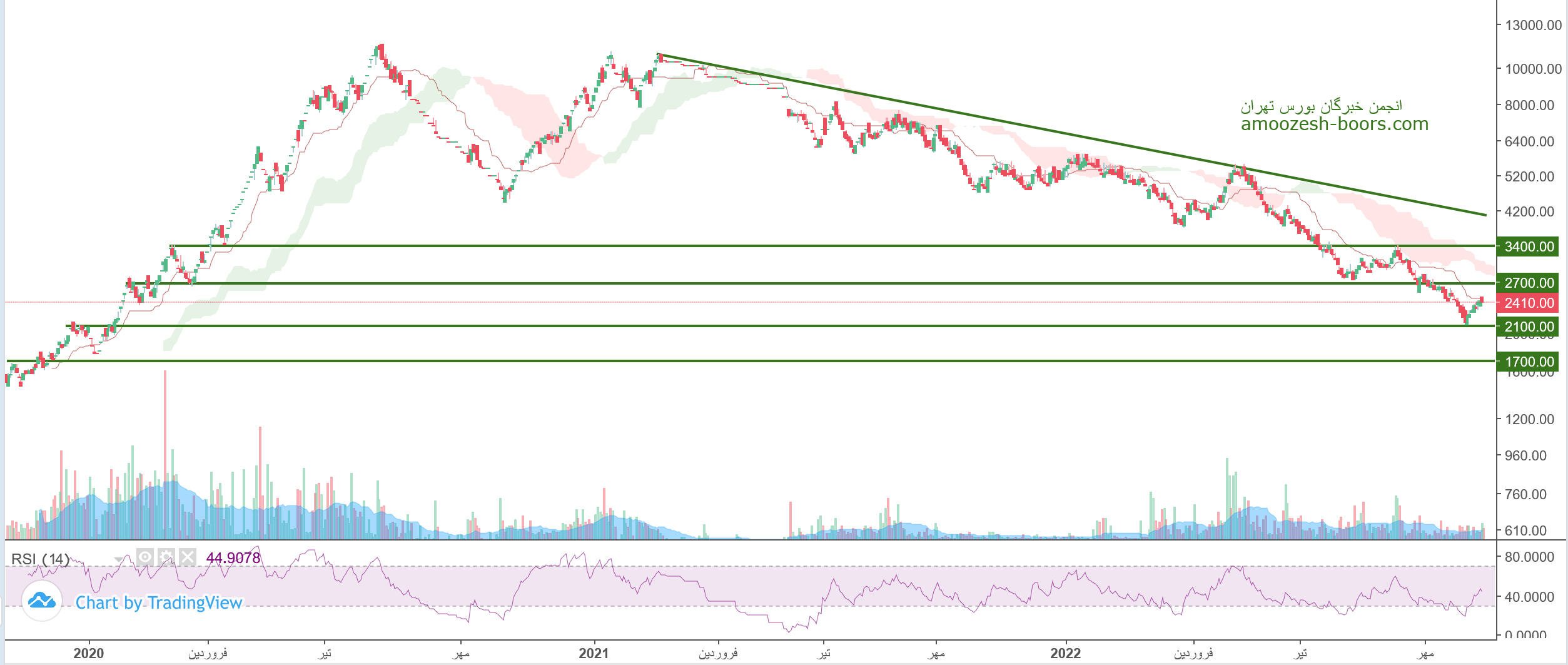 قیمت سهم رکیش در حال حاضر مقاومت 2700 ریال را دارا میباشد، در صورت عبور از این مقاومت، حرکت سهم تا 3400 ریال دور از ذهن نخواهد بود، همچنین در صورت اصلاح، اولبن حمایت سهم زکیش 2100 ریال ارزیابی میگردد.