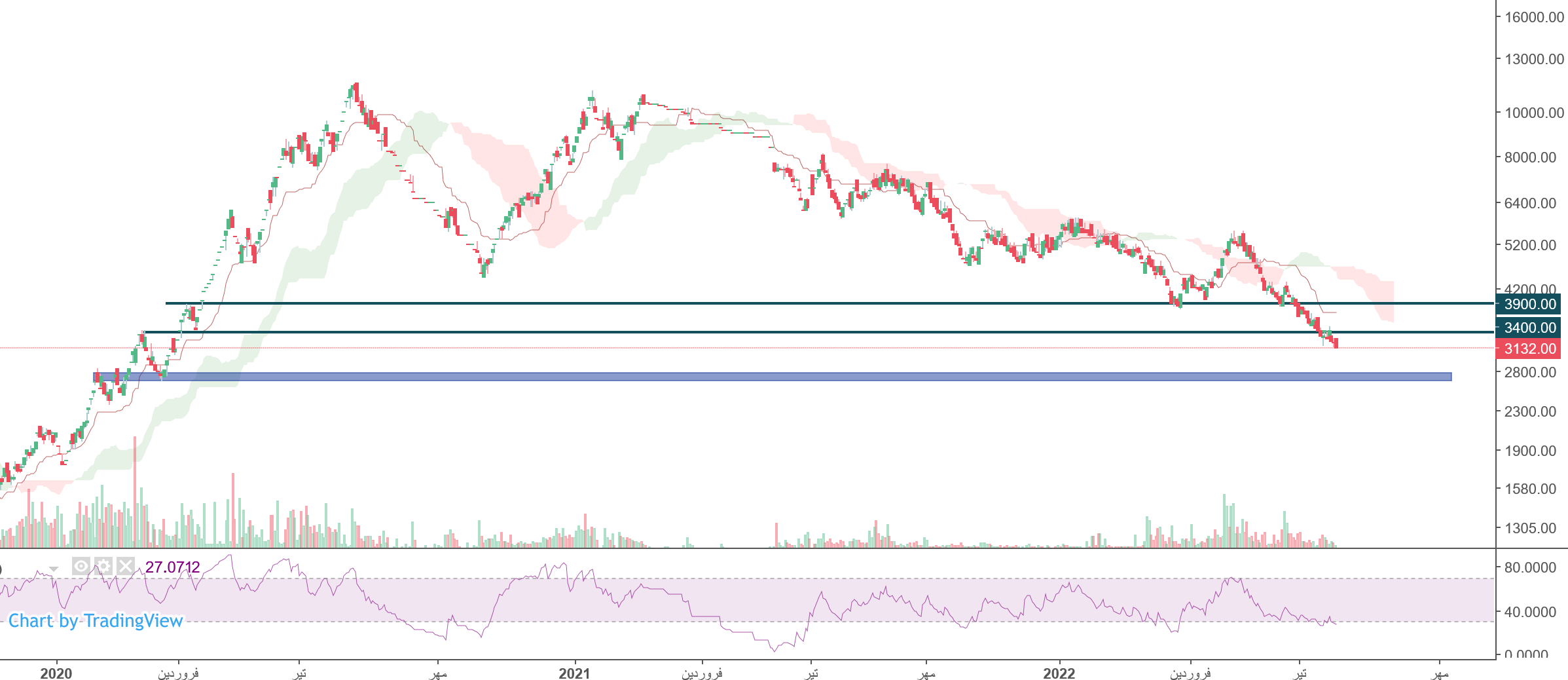 نماد رکیش (شرکت کارت اعتباری ایران کیش) در حال حاضر مقاومت 3400 ریال را دارا میباشد، در صورت تثبیت قیمت و عبور از مقاومت ، حرکت سهم تا 3900 ریال دور از ذهن نخواهد بود، همچنین در صورت اصلاح ، حمایت بعدی سهم رکیش 2700 ریال خواهد بود که در این صورت حد ضرر فعال میگردد.