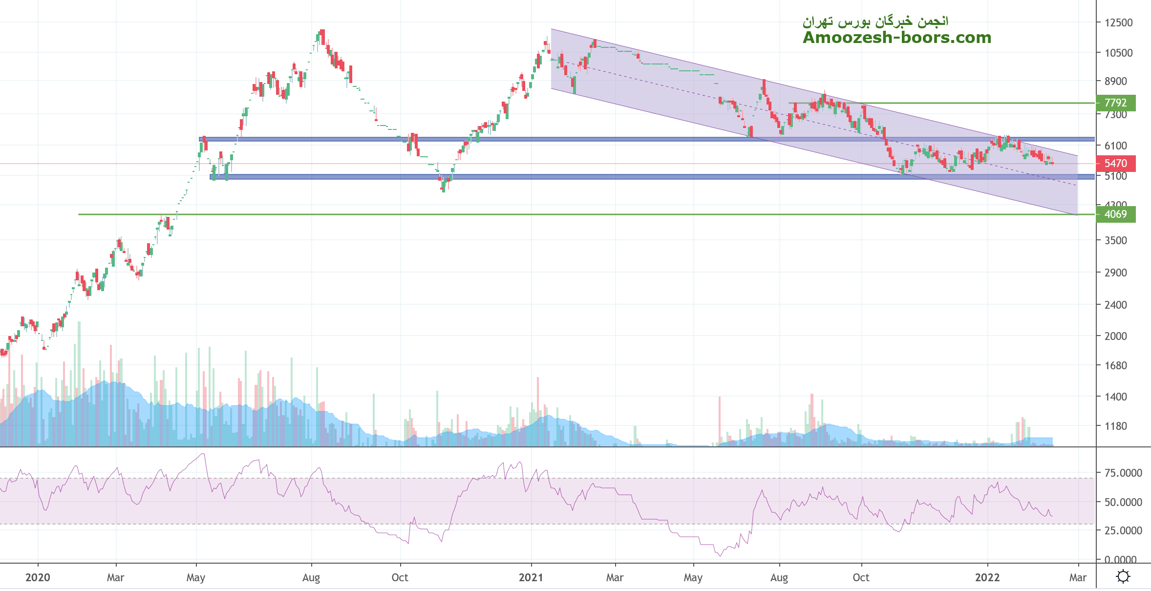 قیمت در حال حاضر در سقف کانال نزولی خود قرار دارد و در حال نوسان بین حمایت و مقاومت استاتیک خود است در صورت شکست مقاومت استاتیک تارگت سهم مقاومت روانی عدد رند 8000 ریال در نظر گرفته خواهد شد و در صورت از دست رفتن حمایت استاتیک نزول سهم تا کف کانال نزولی دور از ذهن نیست.