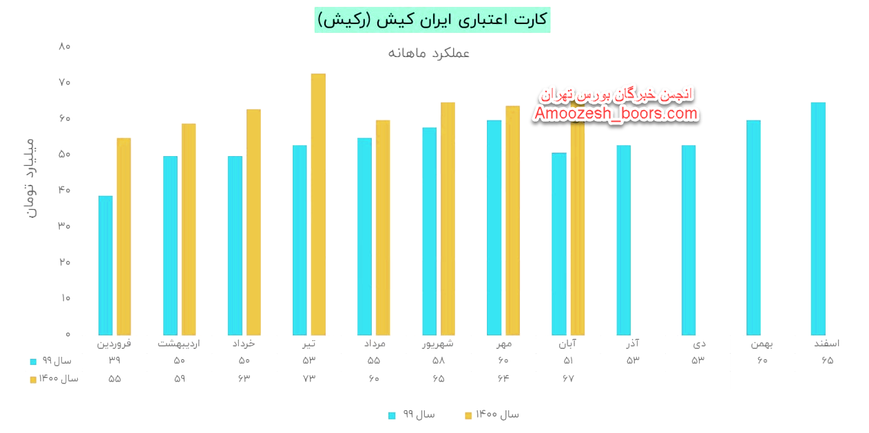 شرکت کارت اعتباری ایران کیش با نماد رکیش در بهمن ماه ۱۴۰۰ مبلغ ۶۸ میلیارد تومان درآمد داشته که این میزان در مقایسه با ماه گذشته ۳ % رشد پیدا کرده است.