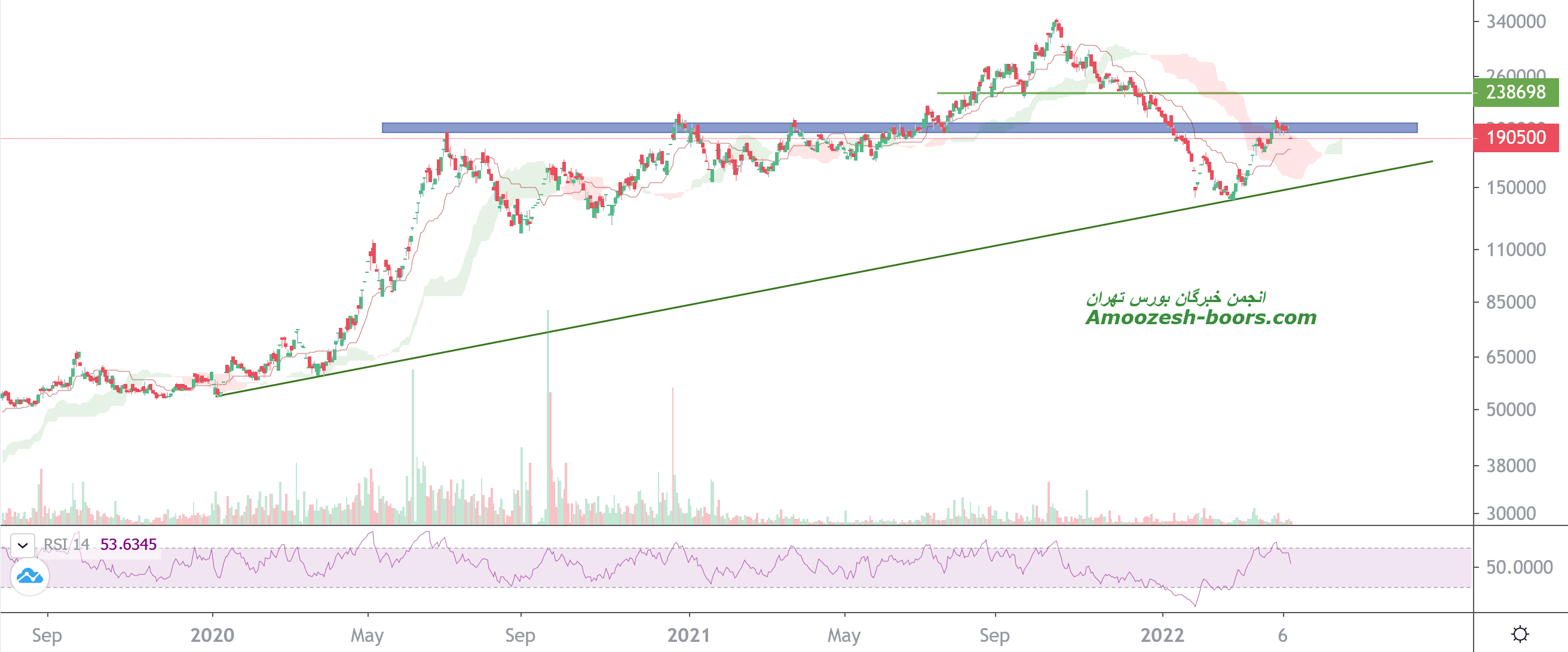 قیمت سهم زاگرس در حال حاضر درگیر محدوده مقاومتی استاتیک خود میباشد و در صورت ادامه فشار خرید و شکستن این محدوده مقاومتی حرکت قیمت تا 238000 ریال دور از ذهن نخواهد بود و در صورتی که سهم وارد فاز اصلاحی شود اولین حمایت سهم کف خط حمایت داینامیک صعودی در قیمت 150000 ریال خواهد بود.
