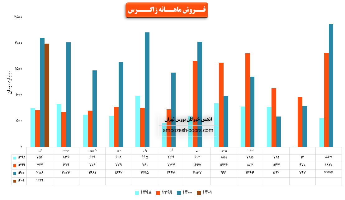 نماد زاگرس نسبت به دوره 1 ماهه مشابه سال قبل 56% افزایش درآمد داشته است.