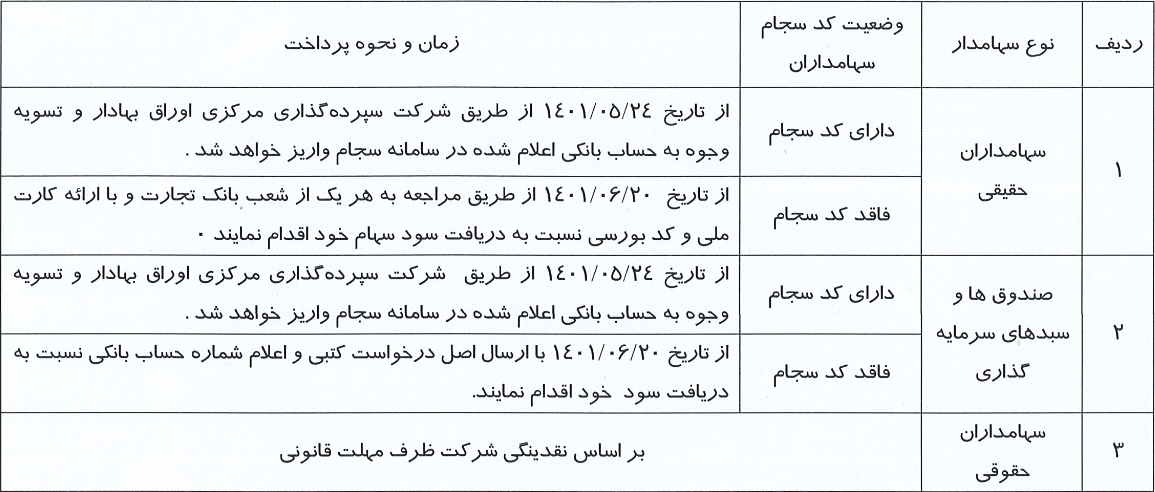 با توجه به اطلاعیه نماد زاگرس مبنی بر زمانبندی پرداخت سود تقسیمی سهام، سهامداران حقیقی و حقوقی می توانند طبق جدول زیر نسبت به دریافت سود سهام خود اقدام کنند: