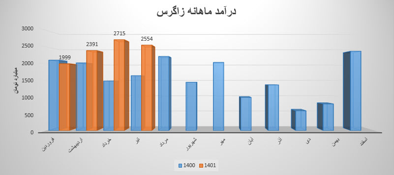 درآمد سهم زاگرس در این دوره نسبت به ماه قبل 20% افزایش و نسبت به میانگین ماه های قبل 20% افزایش داشته است.