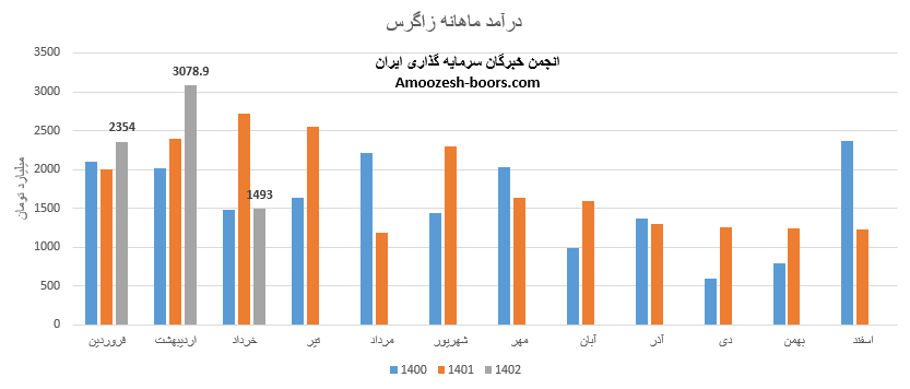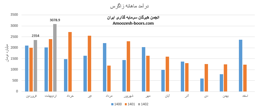نماد زاگرس در عملکرد اردیبهشت ماه سال 1402 موفق به ثبت رکورد جدید و کسب درآمد 3078.9 میلیارد تومانی گردیده است، فروش نماد زاگرس در مقایسه با ماه گذشته 31% و نسبت به مدت مشابه 29% افزایش داشته است، 96% از درآمد ماهانه سهم زاگرس از طریق فروش متانول صادراتی و مابقی از طریق فروش داخلی تامین گردیده است، متانول صادراتی که بیشترین وزن سبد فروش سهم زاگرس را به خود اختصاص داده با افت 1 درصدی نرخ فروش و افزایش 34 درصدی مقدار فروش همراه بوده است، همچنین فروش متانول داخلی با افزایش 22 درصدی مقدار فروش همراه بوده است.