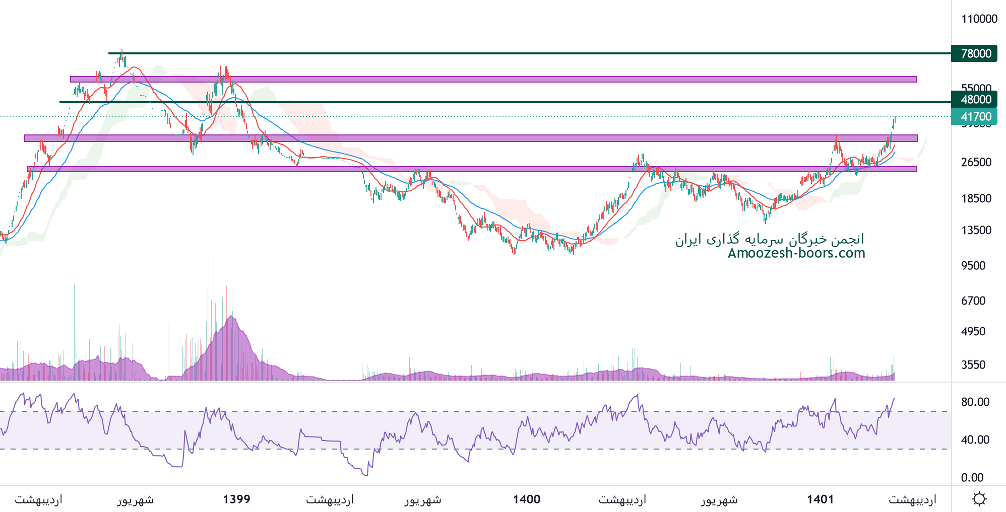 نماد زدشت که در حال حاضر در روند صعودی خوبی قرار دارد، سطح مقاومتی 48000 ریال را پیش روی خود دارد، در صورت ادامه دار شدن فشار تقاضا و عبور سهم زدشت از این سطح مقاومتی، مقاومت بعدی محدوده 60000 ریال در نظر گرفته خواهد شد.، همچنین در صورت ورود سهم به فاز اصلاحی، اولین حمایت محدوده 33000 ریال خواهد بود.
