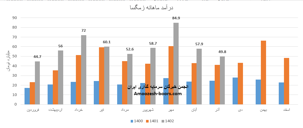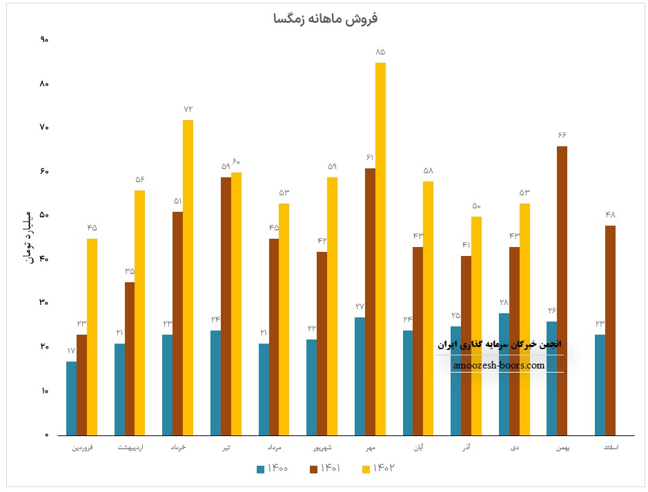 فروش آذر ماه سال 1402 سهم زمگسا 49.8 میلیارد تومان گزارش شده است، تغییرات درآمدی زمگسا به شرح زیر میباشد: