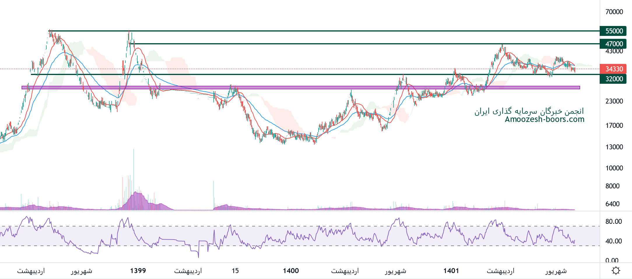 نماد زمگسا سطح حمایتی 32000 ریال را دارا میباشد، احتمال میرود که قیمت سهم در همین منطقه بیس سازی کند، در صورتی که زمگسا موفق به انجام این مهم گردد، سهم تا 47000 ریال رشد خواهد کرد، همچنین در صورت از دست رفتن محدوده حمایتی ذکر شده، حمایت بعدی سهم زمگسا محدوده 27000 ریال خواهد بود.