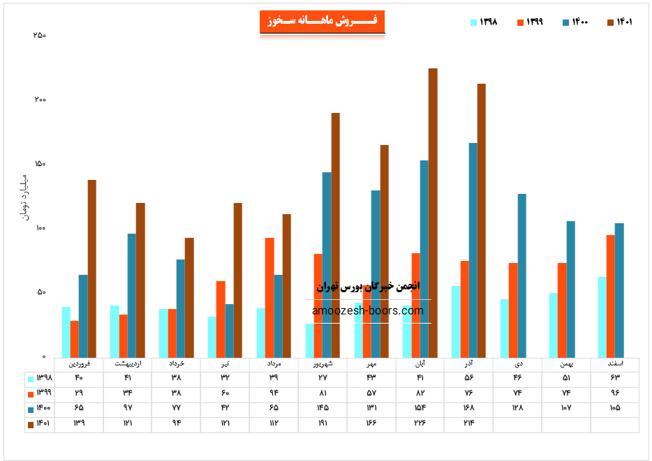 نماد سخوز در گزارش فعالیت بهمن ماه خود به درآمد 224.9 میلیارد تومانی رسیده است، 53% از این درآمد از طریق فروش صادراتی تامین گردید و مابقی از طریق فروش داخلی،