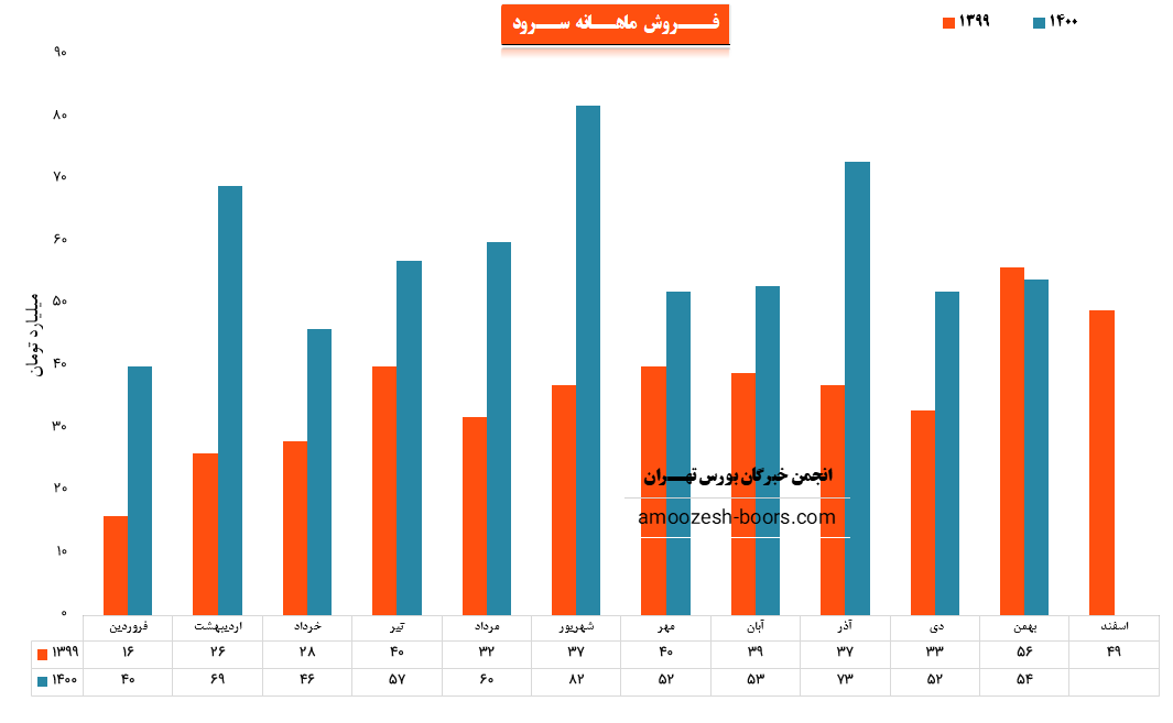 سرود در اردیبهشت فروش فوقالعاده 783 میلیارد ریالی را ثبت کرده است. (60%) درصد از درآمد شرکت درین ماه مربوط به فروش داخلی و (40%) درصد آن مربوط به کل صادرات شرکت است.