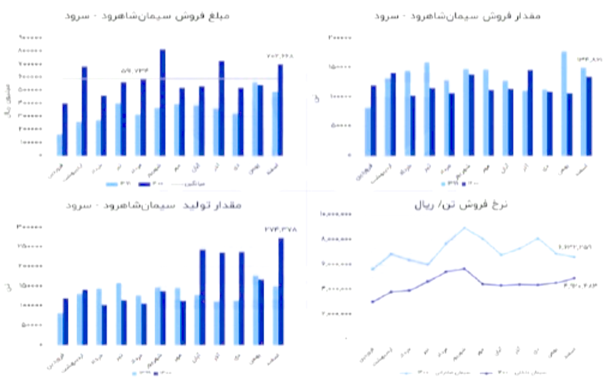 شرکت نسبت به دوره 1 ماهه مشابه سال قبل 61% افزایش درآمد داشته است.تولید سیمان نیز افزایش 7 درصدی داشته است و نرخ فروش محصولات تغیر محسوسی نداشته است . همچنین مجموع مبلغ تجمعی فروش رشد 79 درصدی نسبت به مدت مشابه سال گذشته داشته است .