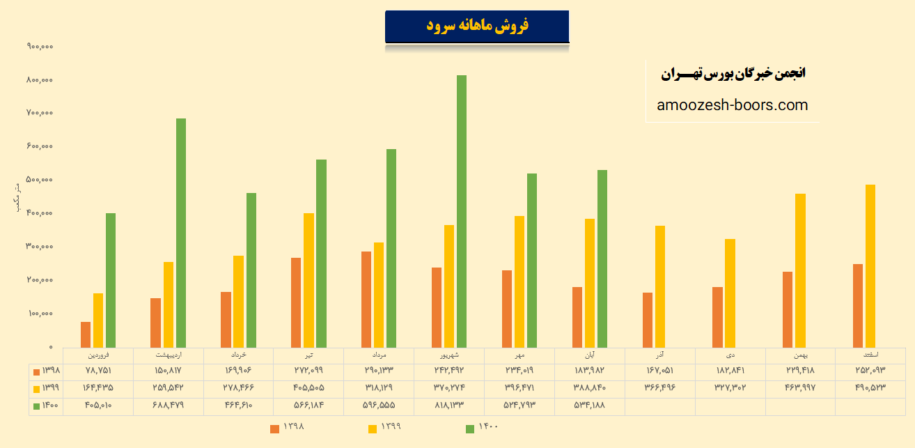 سرود اما در صادرات بهتر از فروش داخلی عمل کرده و در ابان 14 هزار تن صادرات داشته که نسبت به مهر ماه 180% افزایش صادرات به ثبت رسانده است.