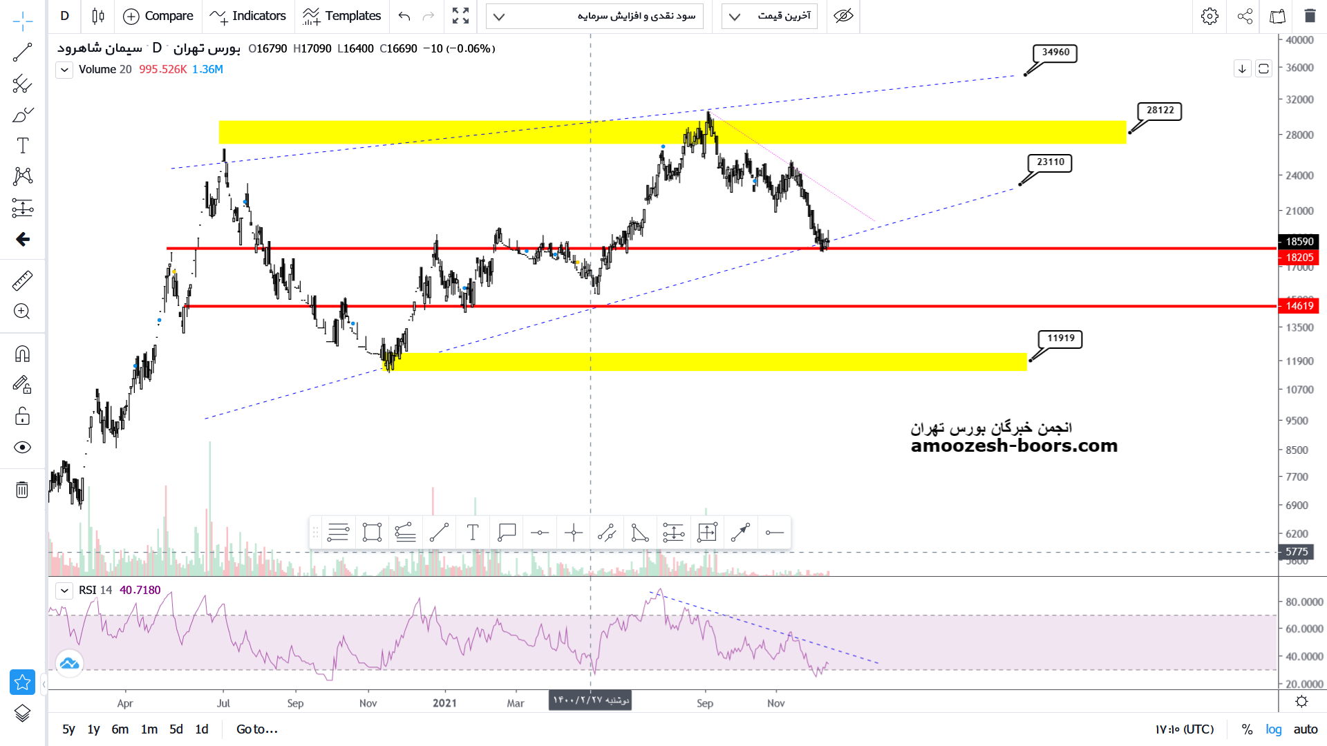 حمایت سهم محدوده 18000 و تارگت سقف مقاومت داینامیک نزولی میباشد .