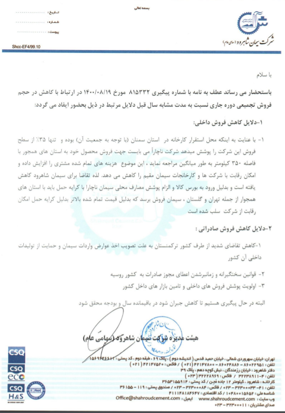 | نام شرکت | شرکت سیمان شاهرود |