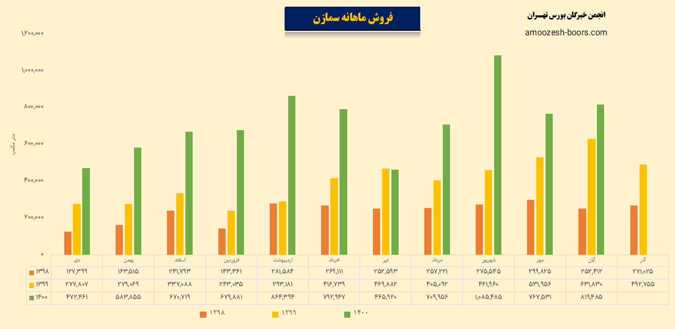 رکورد فروش سمازن در 5 سال اخیر مربوط به شهریور 1400 با مبلغ 108 میلیارد تومان است