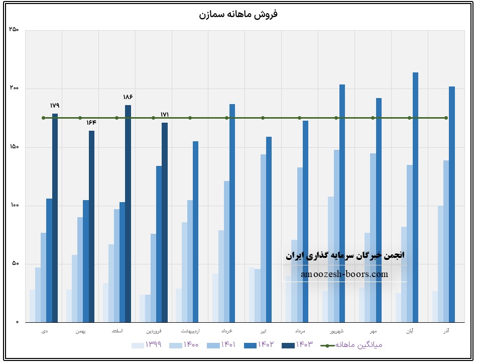 نماد سمازن در فروردین ماه حدود بیش از 144000 تن از محصولات خود را به فروش رسانده که این میزان در مقایسه با حجم فروش ماه گذشته خود حدود 18% کاهش پیدا کرده است.
