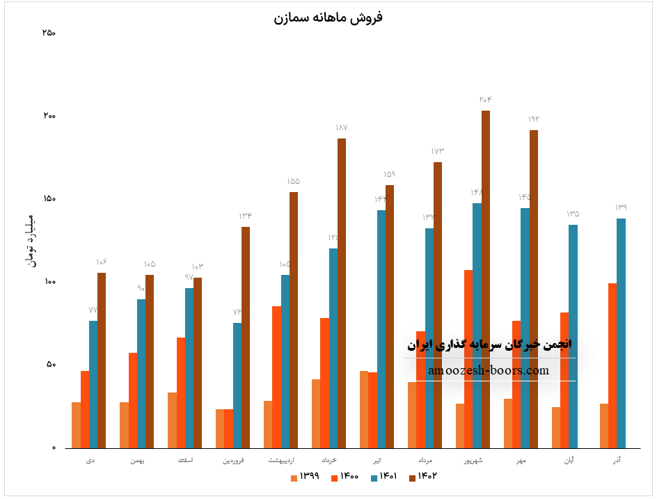 فروش ماهانه سمازن در مقایسه با متوسط ماهانه 41% و نسبت به آبان ماه سال گذشته 58% رشد را نشان میدهد.