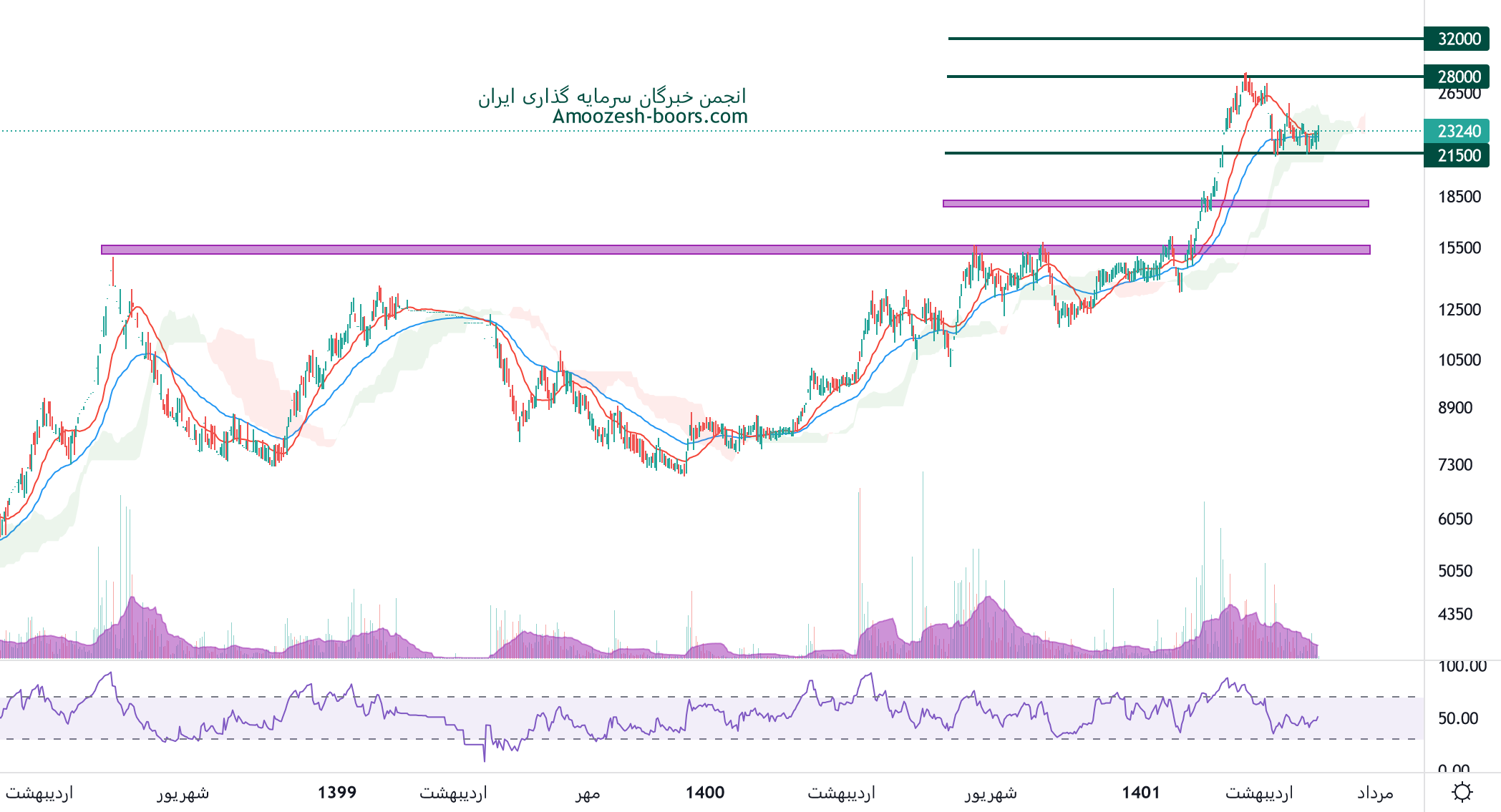 بر اساس نمودار تکنیکال نماد سهرمز، سهم در حال بیس سازی در محدوده حمایتی 21500 ریال میباشد، در صورت حفظ این سطح، سهم سهرمز میتواند تا سطح 28000 ریال حرکت داشته باشد، در غیر این صورت و از دست رفتن سطح حمایتی ذکر شده، اصلاح قیمت سهرمز تا محدوده 18000 ریال ادامه خواهد داشت.