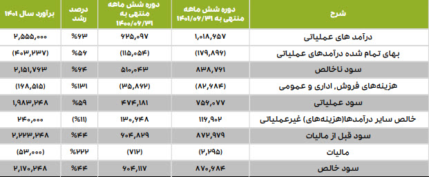 همچنین مجموعا طی عملکرد 6 ماهه سال مالی نسبت به مدت مشابه سال قبل 63% رشد داشته است.