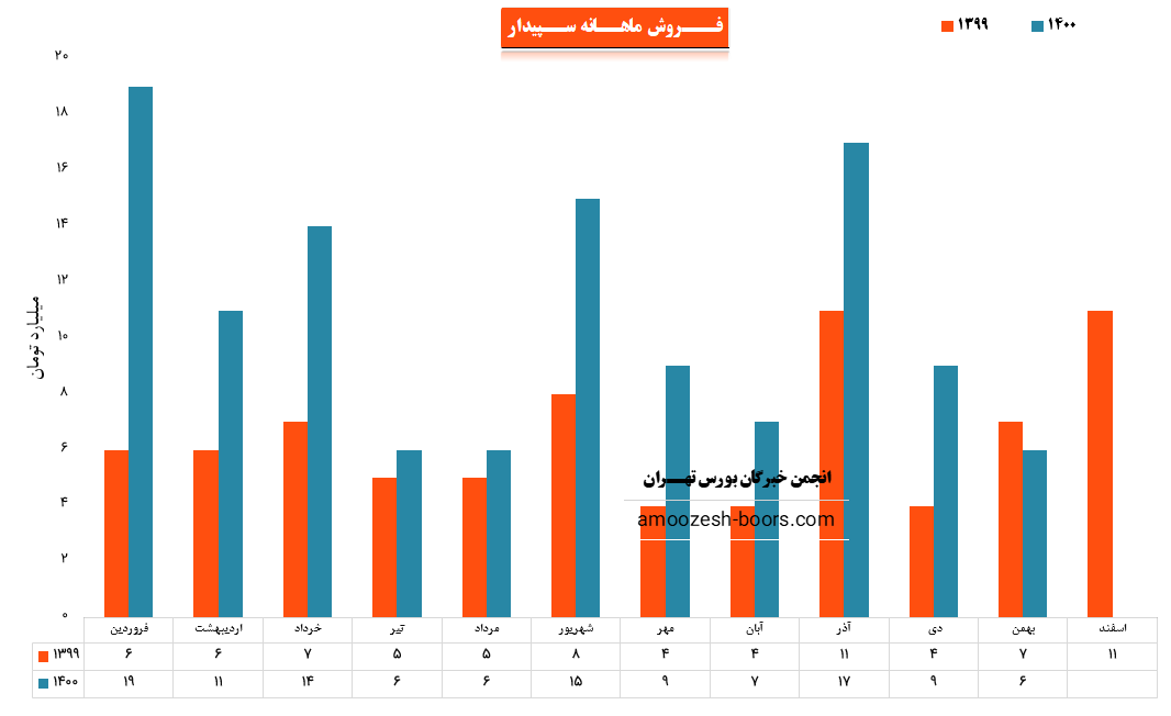 سپیدار در شهریور با درامد خوب 152 میلیارد ریالی به عدد 720 میلیارد ریالی رسیده است کل عدد سال قبل 788 میلیارد ریال بود.
