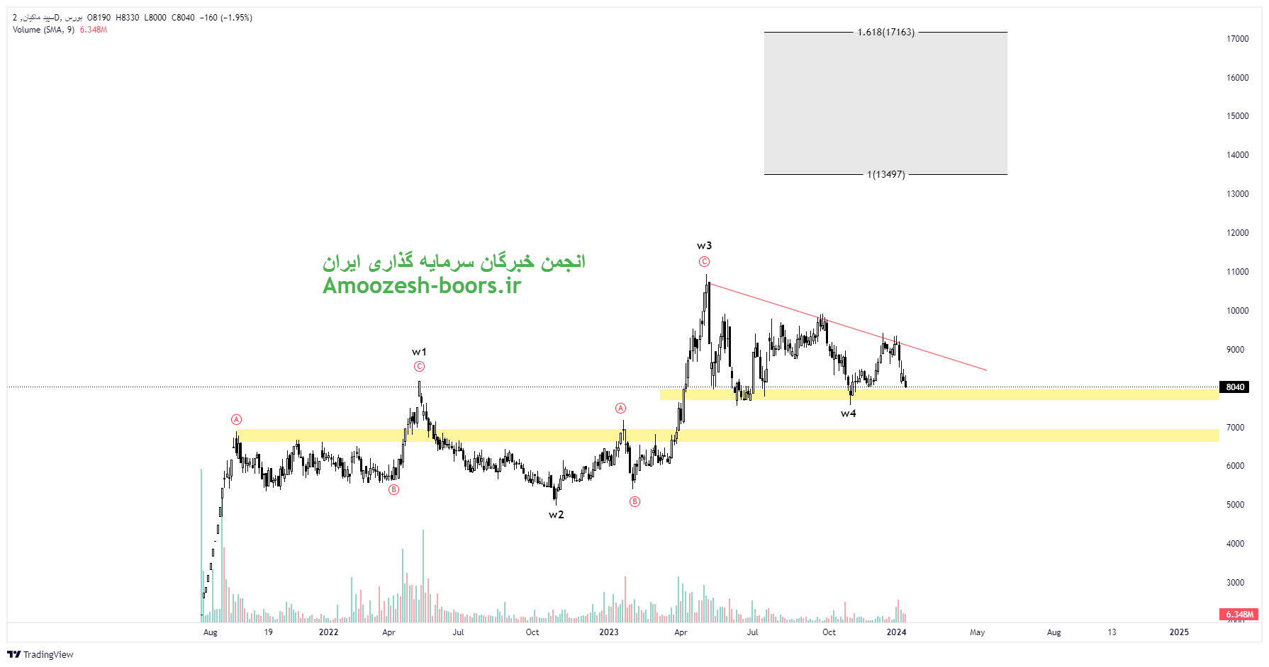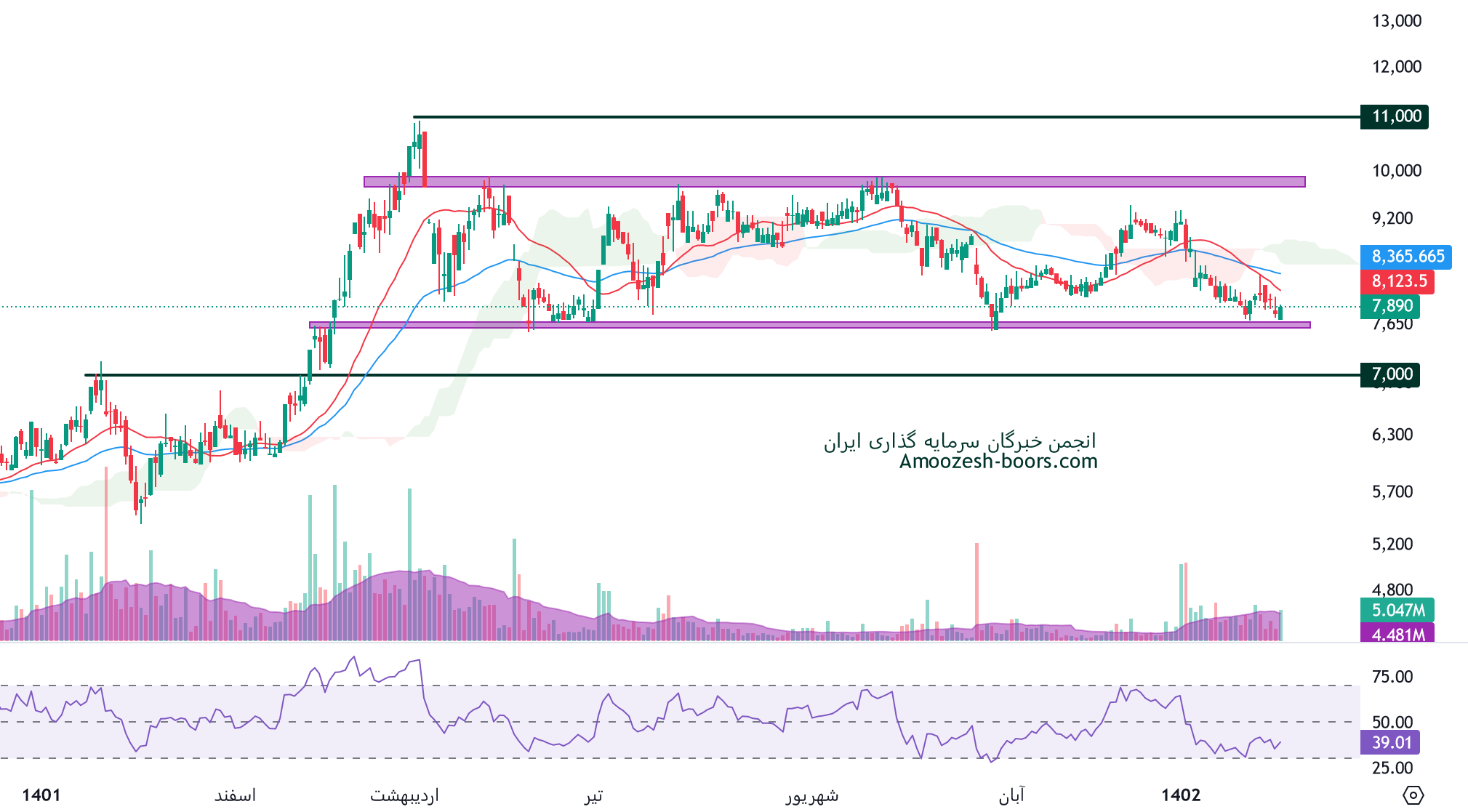 در صورت متعادل شدن جو بازار قیمت پتانسیل برگشت داشته که در این صورت مقاومت های سپید به ترتیب 9700 و 11000 ریال در نظر گرفته خواهند شد.