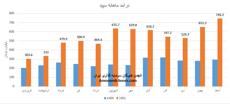 نماد سپید (شرکت سپید ماکیان) در فروردین ماه 1402 حدود مبلغ 764 میلیارد تومان درآمد داشته که این میزان در مقایسه با ماه گذشته 3% و همچنین در مقایسه با مدت مشابه سال گذشته 151% رشد پیدا کرده است.
