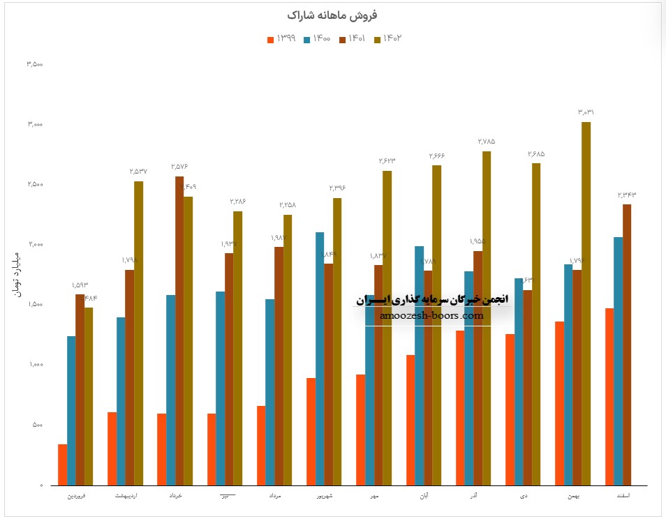 همچنین سهم شاراک با ثبت فروش 29800 میلیارد تومانی در پایان 12 ماهه منتهی به اسفند ماه 1402 توانست حدود 16 درصد بیش از پیشبینی فروش سالانه خود را محقق سازد.