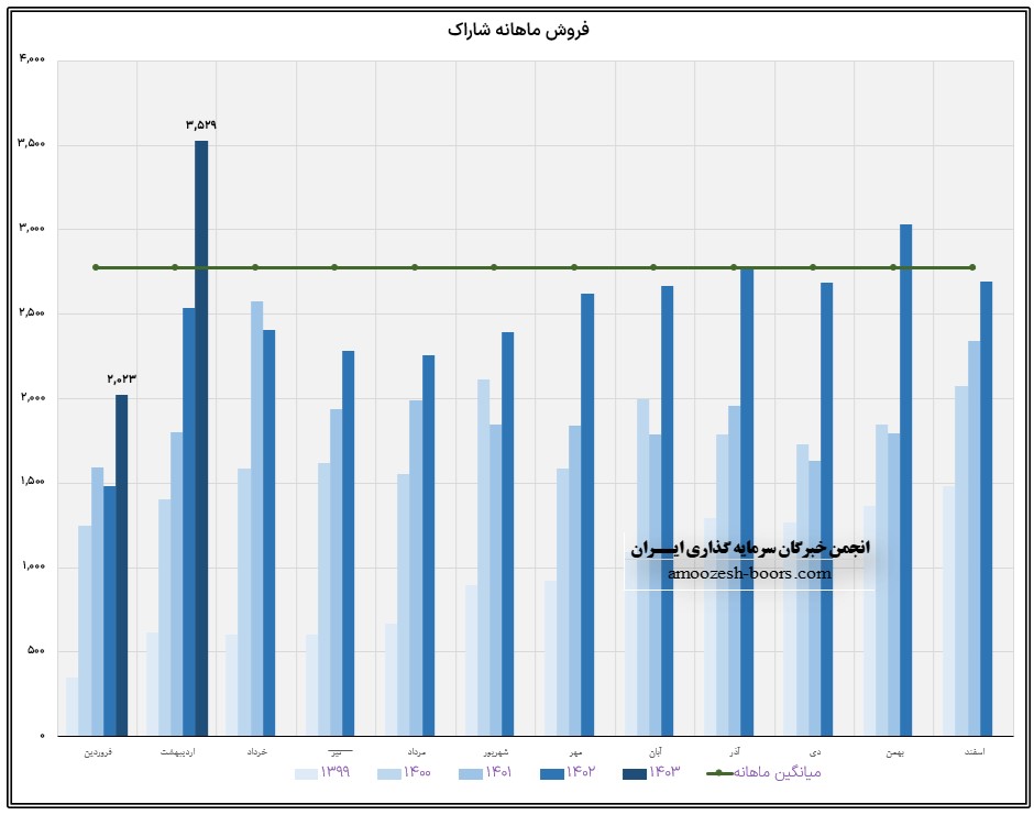 فروش سهم شاراک در این ماه کاهش 11% در مقایسه با ماه گذشته داشته است، همچنین در مقایسه به مدت مشابه 15% و نسبت به متوسط ماهانه 9% افزایش داشته است.