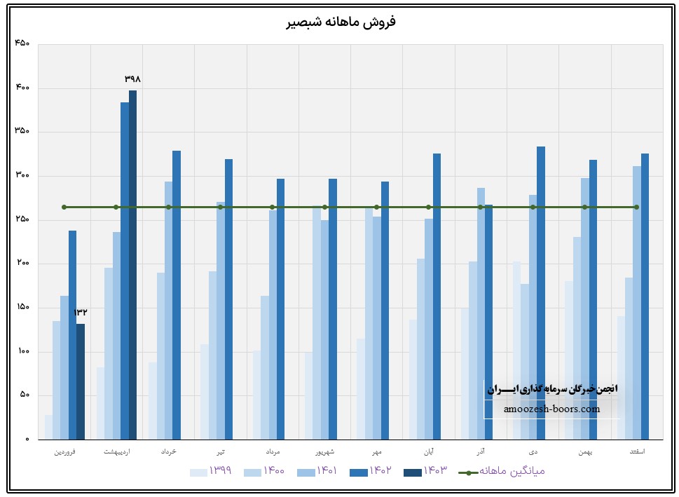 همچنین سهم شبصیر با ثبت فروش 3600 میلیارد تومانی در پایان 12 ماهه منتهی به اسفند ماه 1402 توانست حدود بیش از 99 درصد از پیشبینی فروش سالانه خود را محقق سازد.