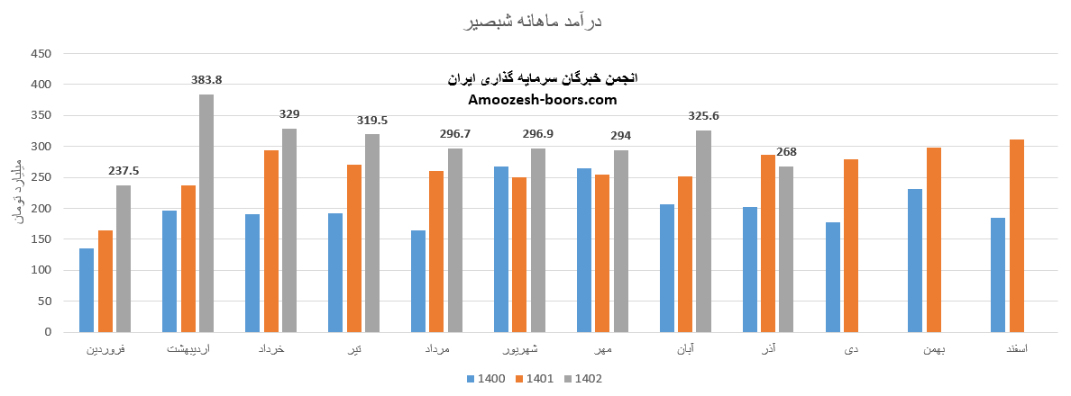 درآمد ماهانه نماد شبصیر نسبت به ماه گذشته 25% رشد، نسبت به متوسط ماهانه 9% رشد و نسبت به مدت مشابه 20% رشد را تجربه نموده است.