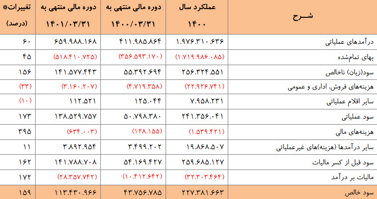 سود ناخالص 156% ،سود عملیاتی 173% رشد ، درآمد های عملیاتی 60 درصد و هزینه های مالی رشد 395 درصدی را تجربه نموده اند .