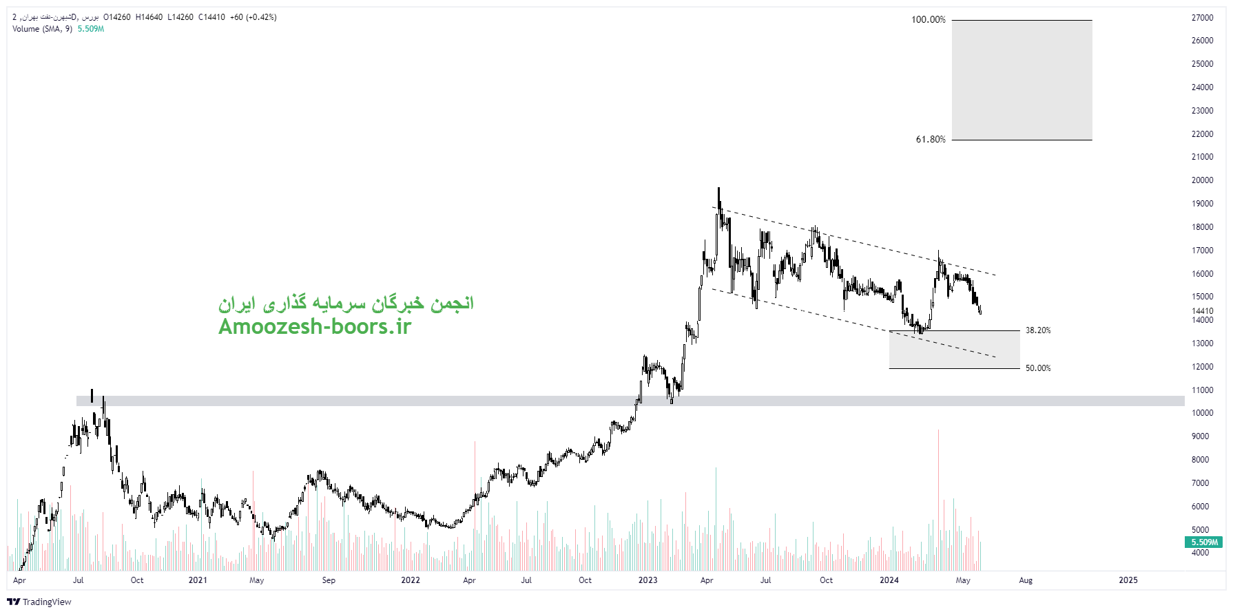 سهم شبهرن در قالب یک کانال نزولی در حال اصلاح میباشد. لذا نخستین حمایت نزدیک به سهم ناحیه ۱۳۵۰۰ ریال و سپس 12000 ريال در نظر گرفته شده است. در صورت ایجاد تقاضا در کلیت بازار و همچنین عبور از مقاومت سقف کانال نزولی، سهم شبهرن وارد فاز صعودی شده و لذا در همین راستا اهداف ۲۲۰۰۰ ریال و ۲۷۰۰۰ ریال دور از انتظار نخواهد بود.