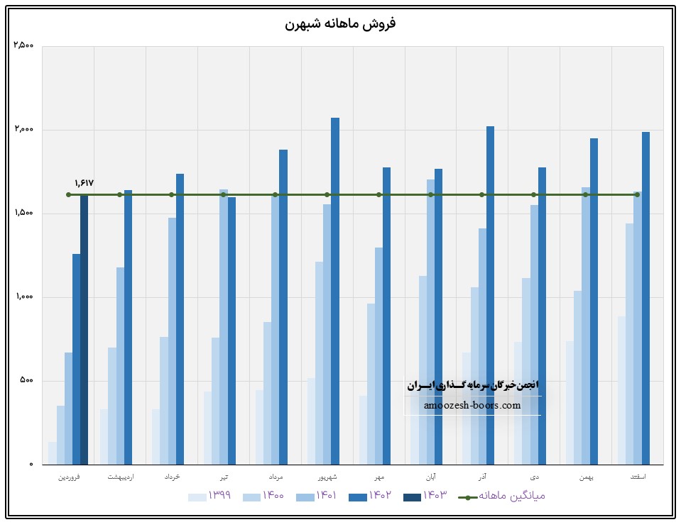 سهم شبهرن (شرکت نفت بهرن) در فروردین ماه سال 1403 موفق به ثبت فروش 1617 میلیارد تومانی شده است. لازم به ذکر است که درآمد این ماه نسبت به ماه گذشته افت 19 درصدی همچنین و نسبت به مدت مشابه سال گذشته رشد 28 درصدی را تجربه کرده است.