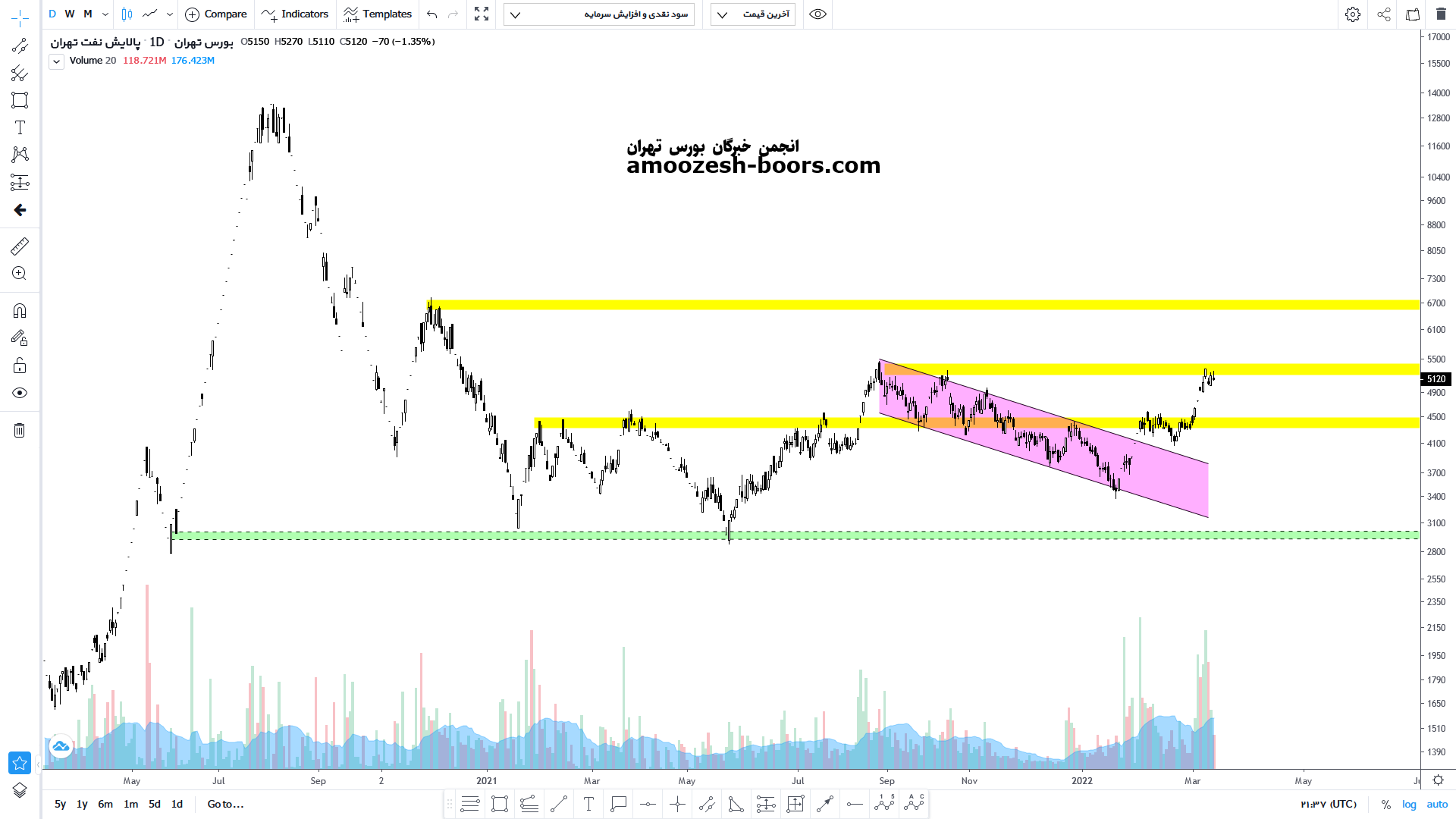 قیمت سهم شتران در حال حاضر حمایت 5000 ریال را دارا میباشد،در صورت تثبیت قیمت حرکت سهم تا 6400 ریال دور از ذهن نخواهد بود،همچنین در صورت از دست رفتن حمایت حد ضرر فعال میگردد.
